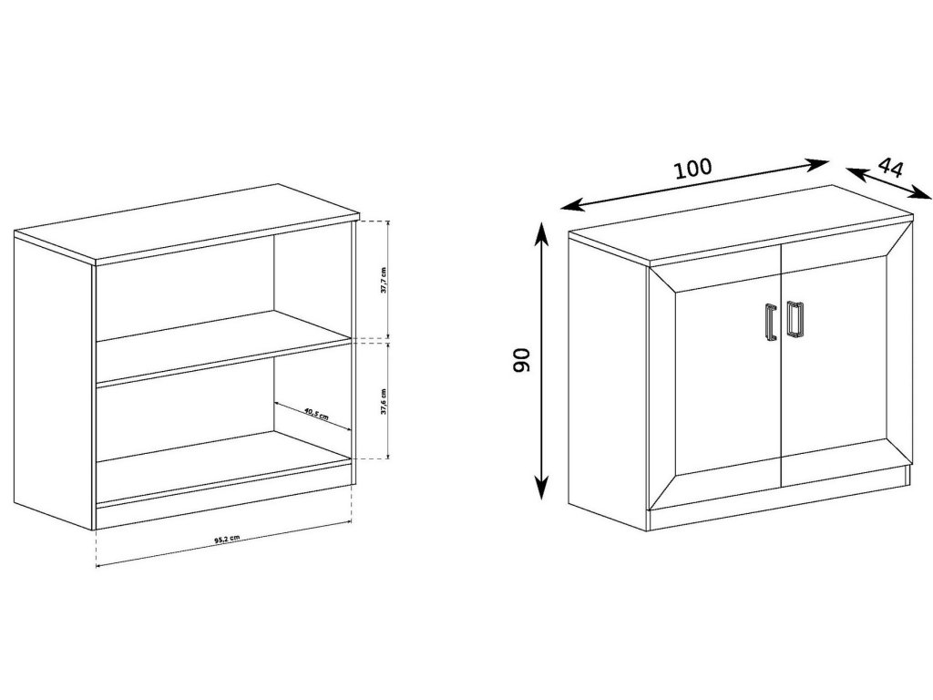 šířka: 100 cm | výška: 90 cm | hloubka: 44 cm Komoda dvoudveřová ze sektorové řady. Komoda má 2 dvířka, za dvířky je 1 police. Systém je exkluzivní kolekce navržena v duchu...