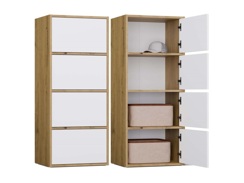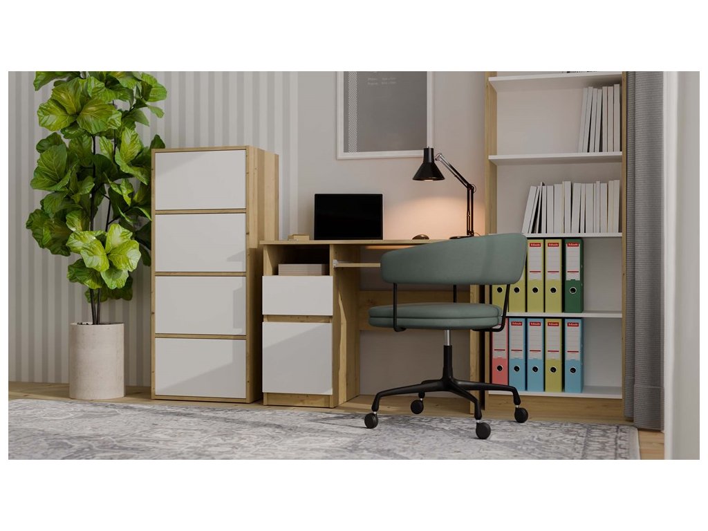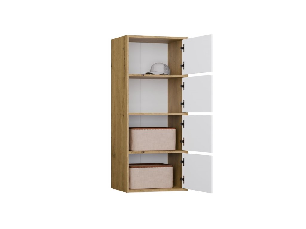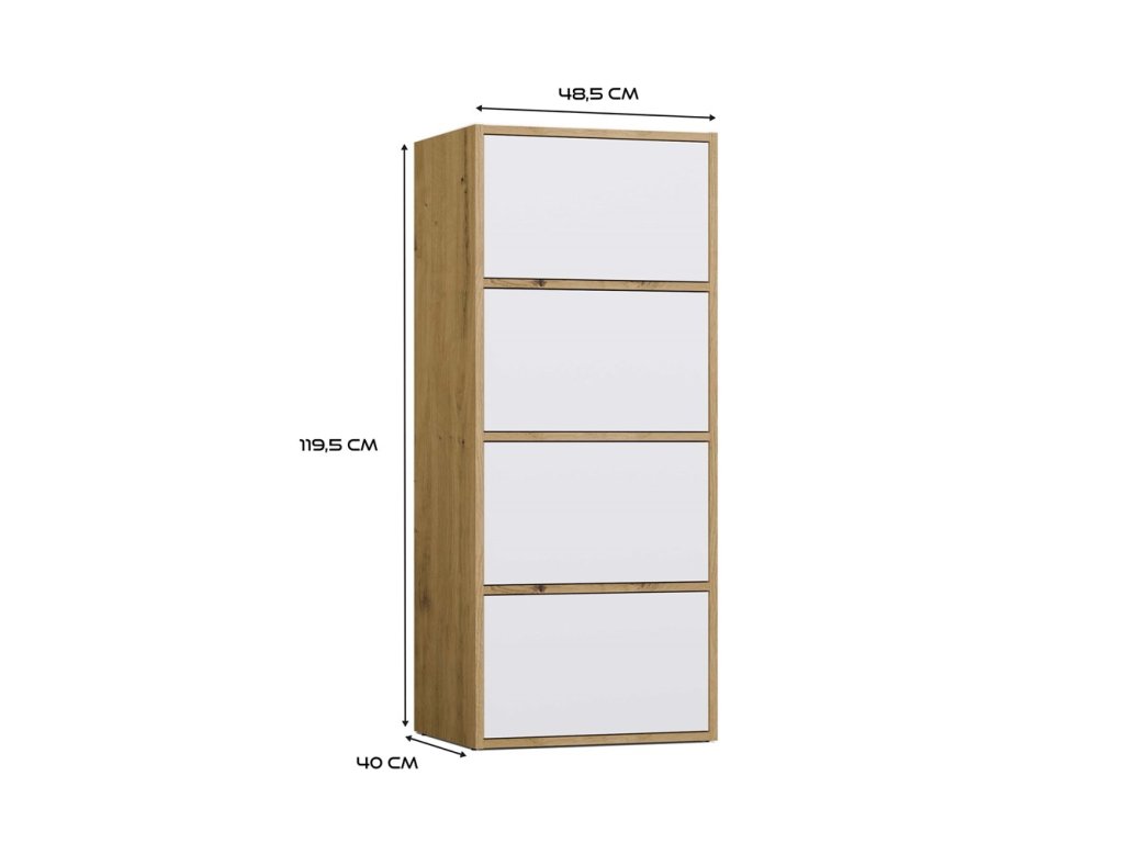 Komoda ALMA je elegantní a praktický nábytek, který se skvěle uplatní v předsíni, dětském pokoji, obývacím pokoji, ložnici i pracovně. Její čisté linie a minimalistické provedení působí moderně a zároveň útulně, díky čemuž se snadno začlení do různých stylů interiéru.Za čtyřmi dvířky se nachází prostorné police, které umožňují přehledné uložení oblečení, dokumentů nebo doplňků do domácnosti. Díky bezúchytovým čelům s praktickým systémem TIP-ON se dvířka otevírají jemným zatlačením, což podtrhuje moderní charakter celé komody.