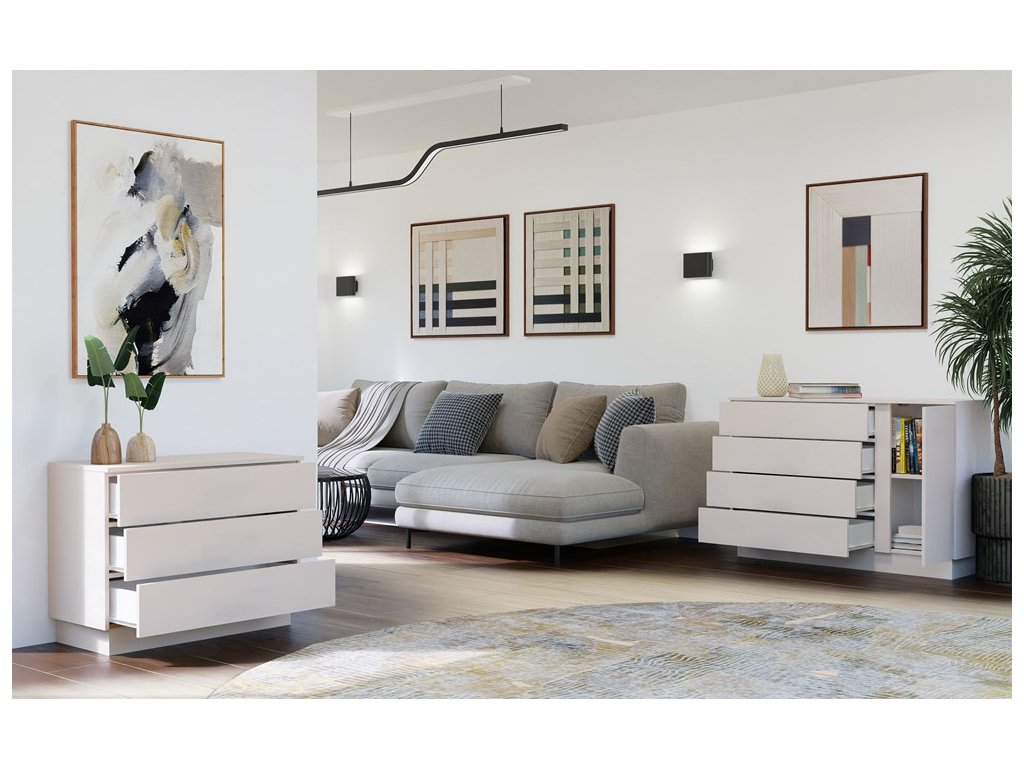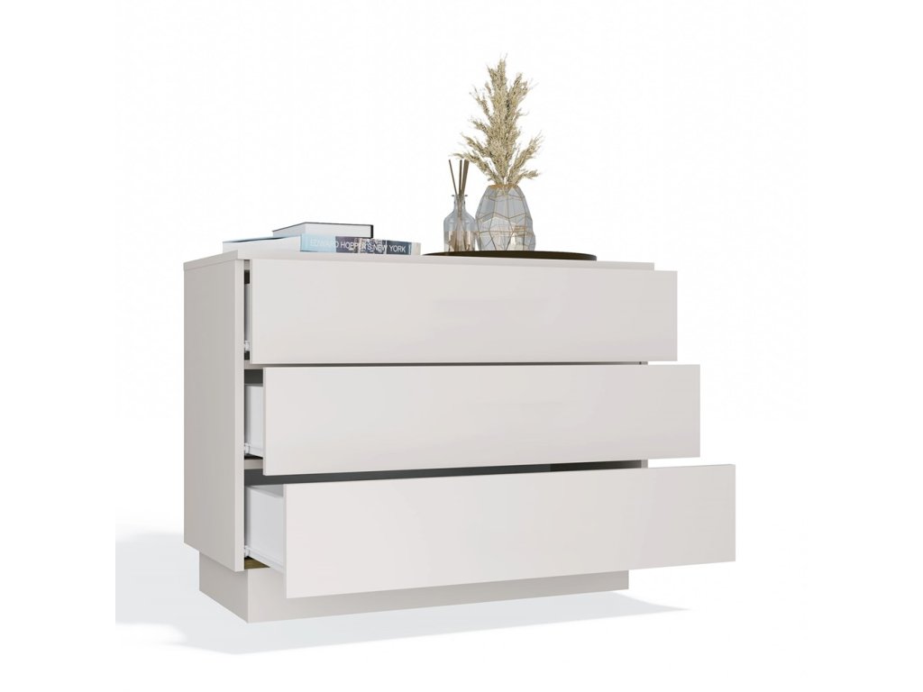Komoda AMBER 3S je ideálním řešením pro ty, kdo hledají spojení elegance a funkčnosti. Díky svému jednoduchému designu se snadno kombinuje s dalšími prvky interiéru a působí čistě a moderně. Tři prostorné zásuvky otevírané systémem TIP-ON umožňují pohodlné ukládání oblečení, dokumentů i drobných předmětů, které chcete mít po ruce. Díky kompaktním rozměrům je vhodná i do menších pokojů, kde poskytne přehledný úložný prostor a zároveň nezabere příliš místa. Vyrobeno z kvalitní LTD desky, která má tloušťku 16 mm a je nenáročná na údržbu. Dodáváme v demontu.