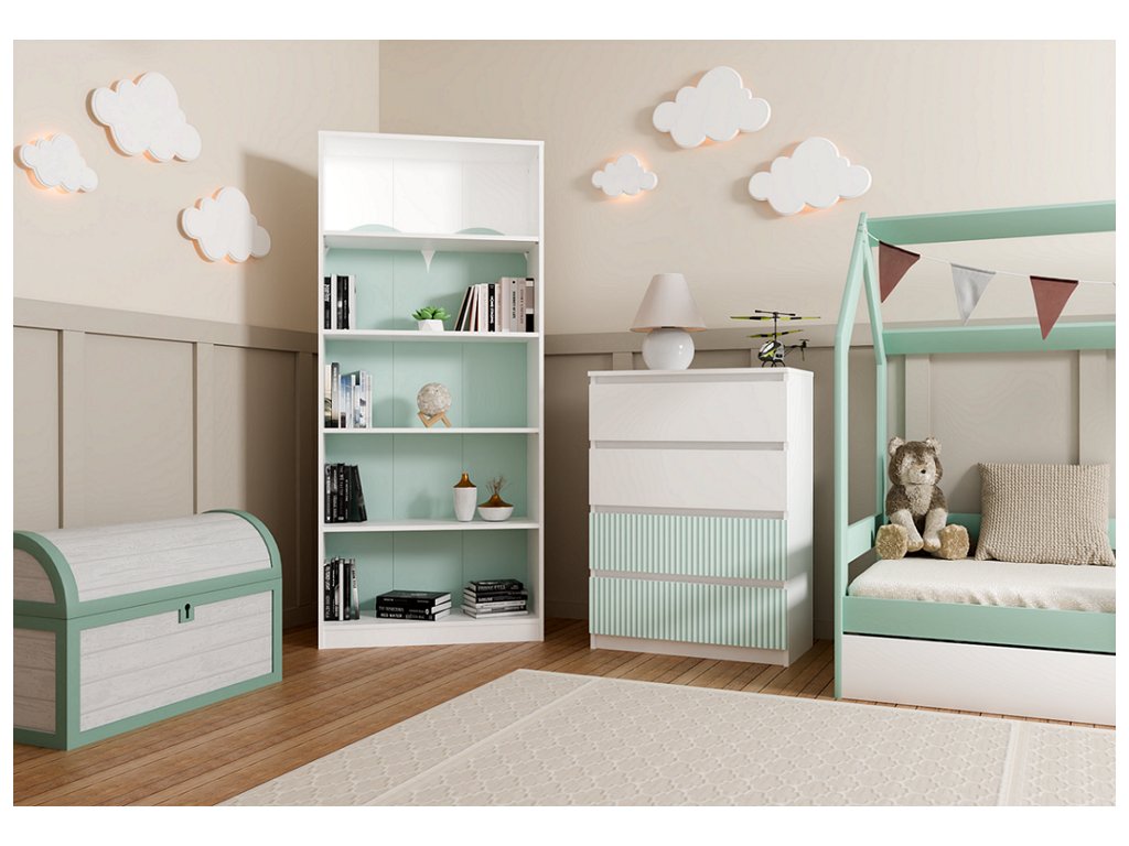 Moderní komoda z kolekce MALWA je funkční a prostorný kus nábytku, ideální do dětského nebo studentského pokoje. Přední část dvou spodních zásuvek má vertikální vzory v modré barvě, vytištěné moderní technologií. Šuplíky bez madel dodávají komodě moderní vzhled, ale zároveň zajišťují pohodlné a bezproblémové používání. Vyrobeno z kvalitní LTD desky, která má tloušťku 16 mm a je nenáročná na údržbu. Dodáváme v demontu. V naší další nabídce naleznete kompletní sortiment z kolekce MALWA.Doplňkové parametry