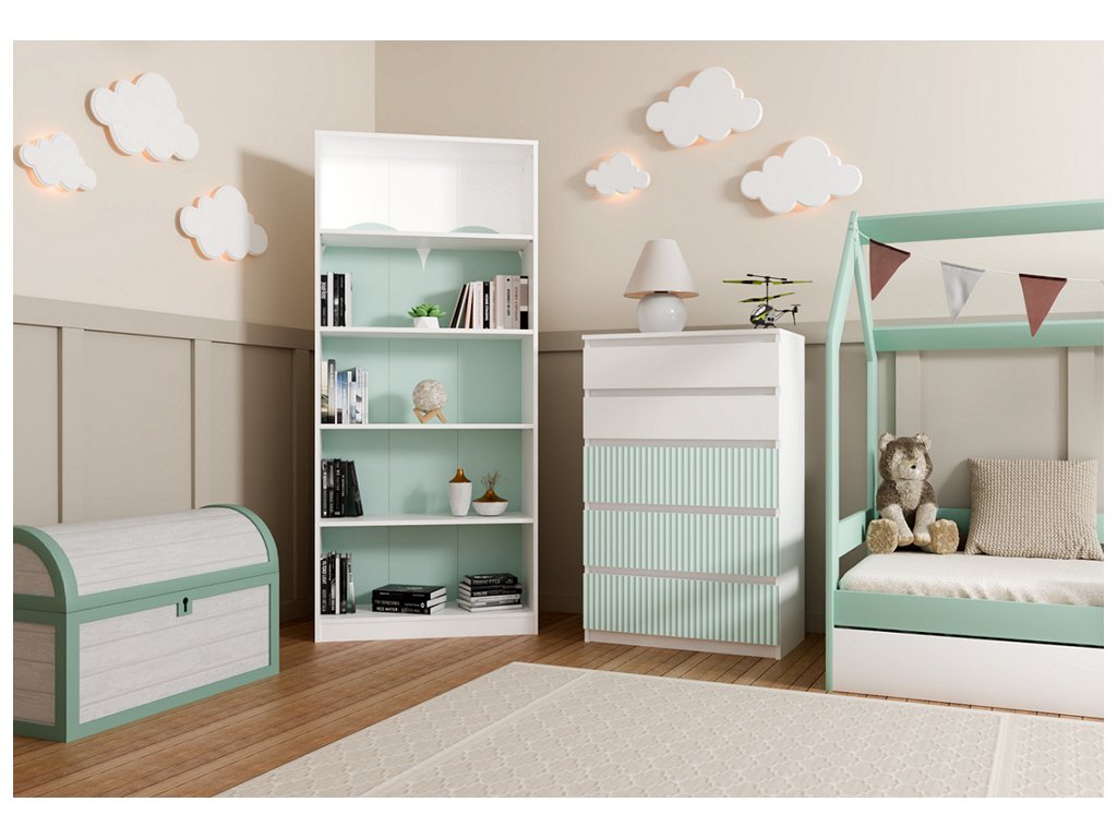 Moderní komoda z kolekce MALWA je funkční a prostorný kus nábytku, ideální do dětského nebo studentského pokoje. Přední část třech spodních zásuvek má vertikální vzory v modré barvě, vytištěné moderní technologií. Šuplíky bez madel dodávají komodě moderní vzhled, ale zároveň zajišťují pohodlné a bezproblémové používání. Vyrobeno z kvalitní LTD desky, která má tloušťku 16 mm a je nenáročná na údržbu. Dodáváme v demontu. V naší další nabídce naleznete kompletní sortiment z kolekce MALWA.