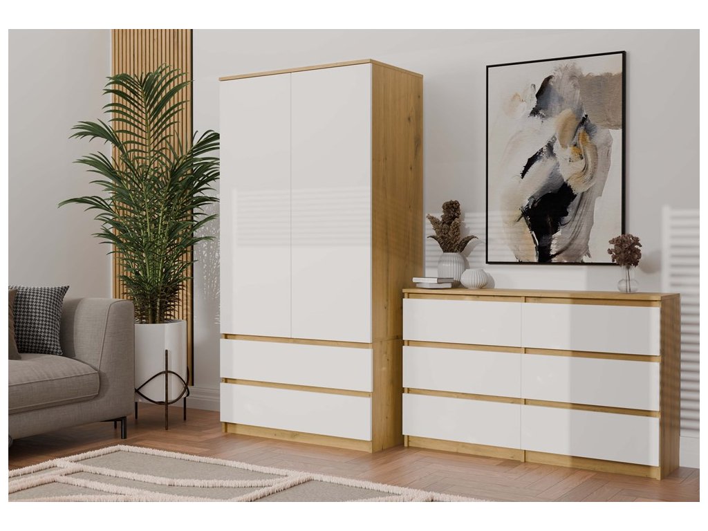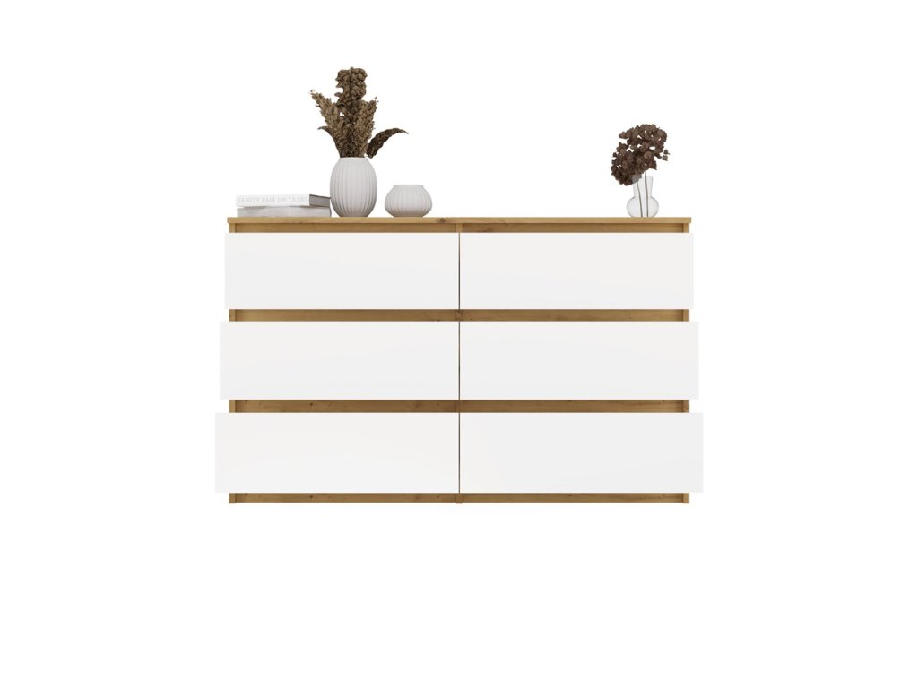 Moderní komoda z kolekce MALWA představuje funkční a prostorný kus nábytku, který skvěle poslouží jako praktický a stylový doplněk vaší ložnice, obývacího pokoje nebo dokonce dětského pokoje. Svým univerzálním designem splňuje očekávání všech těch, kteří upřednostňují spojení jednoduchosti a elegance ve svém domově. Minimalistická konstrukce a šuplíky bez madel dodávají komodě moderní vzhled, ale zároveň zajišťují pohodlné a bezproblémové používání. Vyrobeno z kvalitní LTD desky, která má tloušťku 16 mm a je nenáročná na údržbu. Dodáváme v demontu. V naší další nabídce naleznete kompletní sortiment z kolekce MALWA.