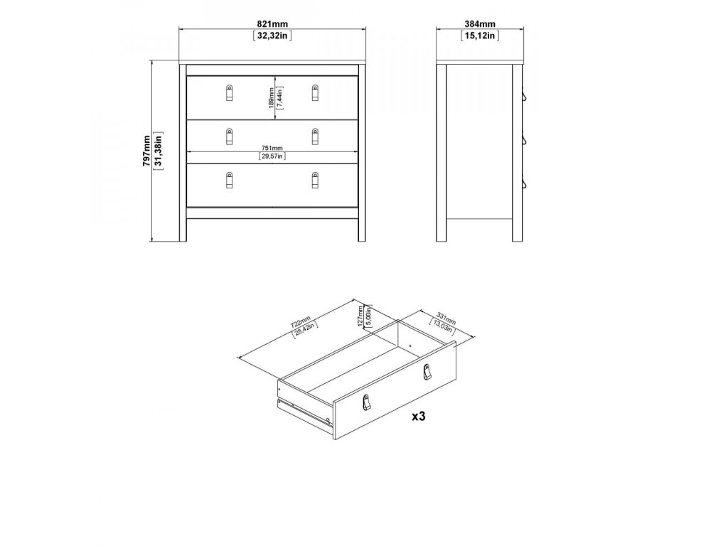 Komoda Real 3s černá