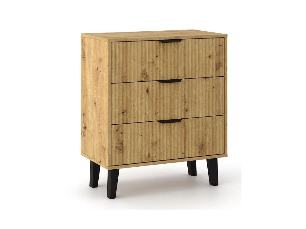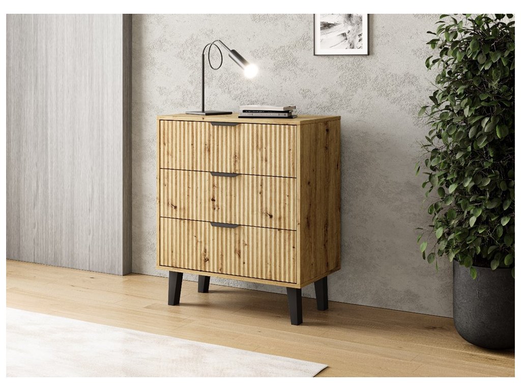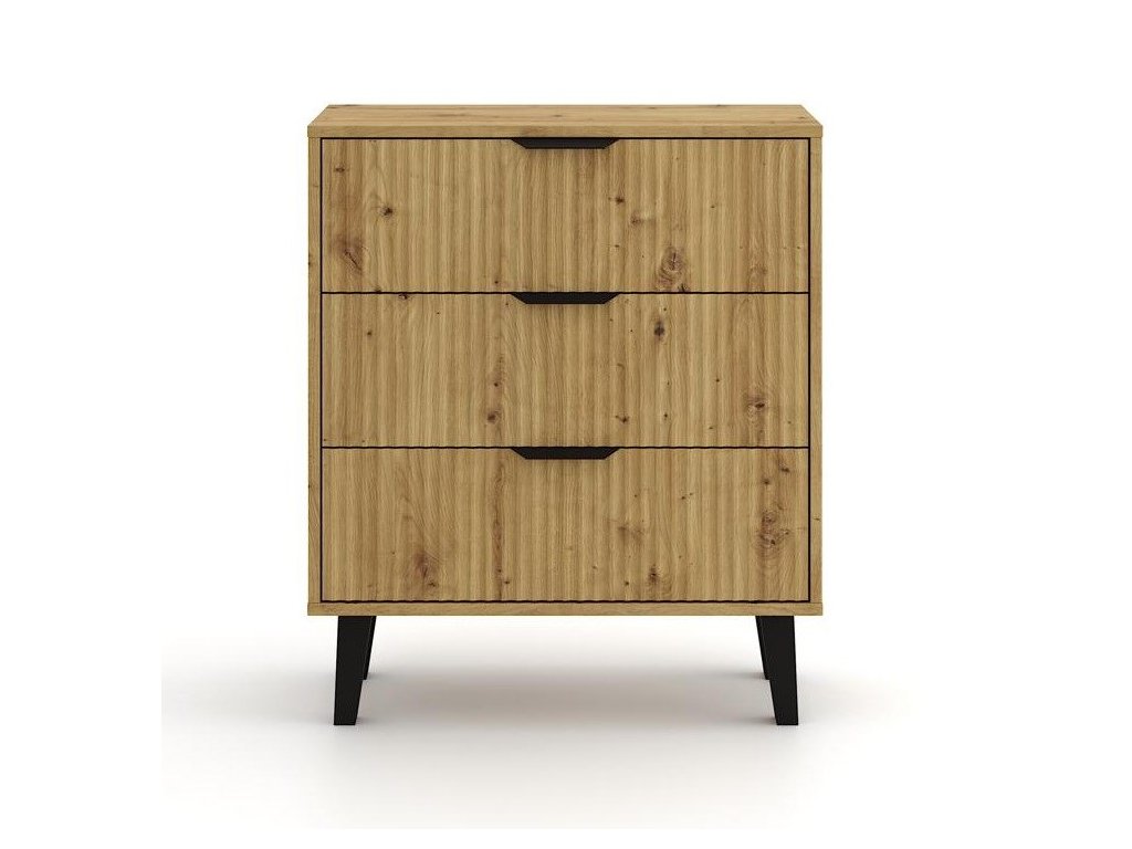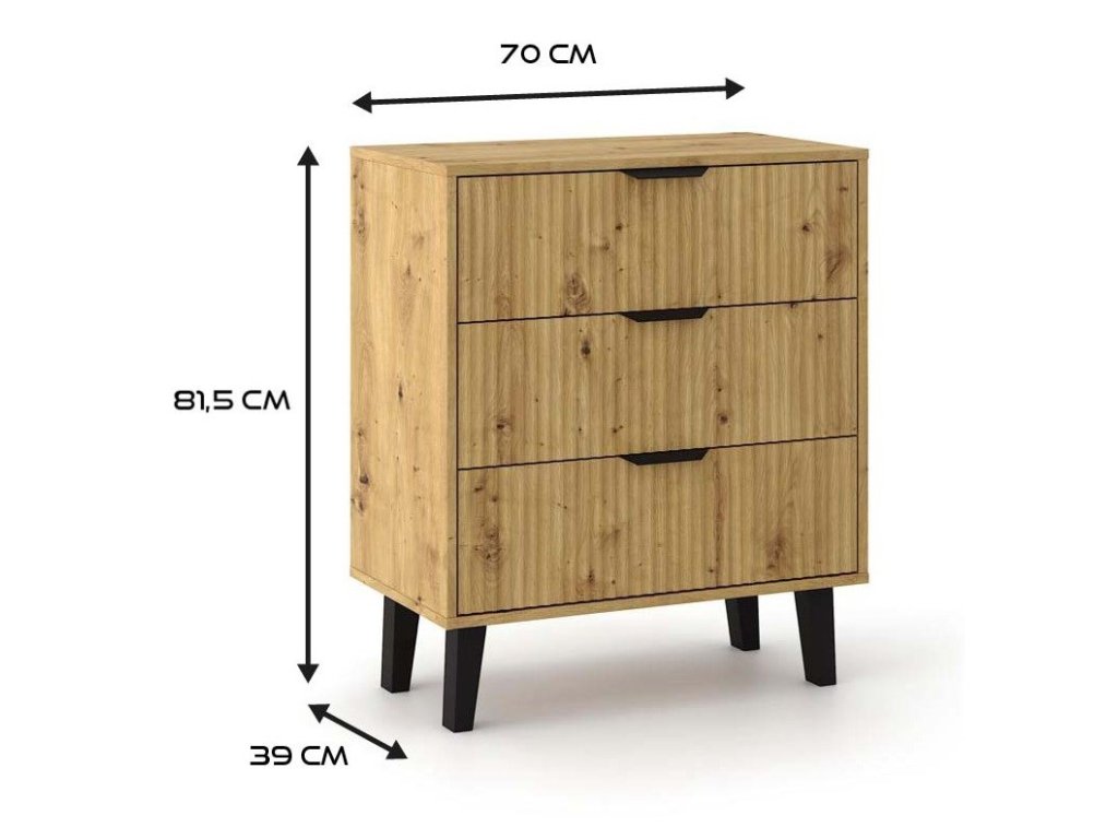 Díky třem hlubokým zásuvkám snadno uložíte oblečení, dokumenty, doplňky nebo drobnosti, které chcete mít vždy po ruce. Komoda SCANDI 3S SLIM tak spojuje moderní estetiku s maximální funkčností a je skvělou volbou pro každodenní využití.