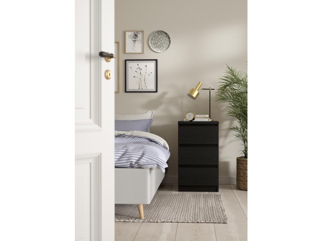 Komoda Simplicity v nadčasovém minimalistickém designu bez úchytek dodá moderní nádech vašemu interiéru. Díky svému provedení nabízí univerzální použití třeba jako noční stolek nebo zásuvková skříňka k psacímu stolu. Sortiment této řady vyrobené z kvalitního lamina nabízí noční stolky, postele, komody, botníky a další úložné prostory v široké škále barevných variant a velikostí.