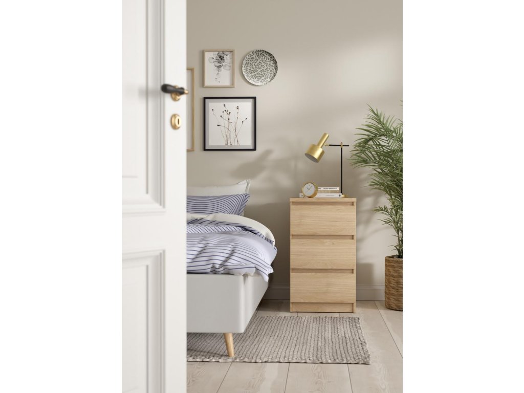 Komoda Simplicity v nadčasovém minimalistickém designu bez úchytek dodá moderní nádech vašemu interiéru. Díky svému provedení nabízí univerzální použití třeba jako noční stolek nebo zásuvková skříňka k psacímu stolu. Sortiment této řady vyrobené z kvalitního lamina nabízí noční stolky, postele, komody, botníky a další úložné prostory v široké škále barevných variant a velikostí.