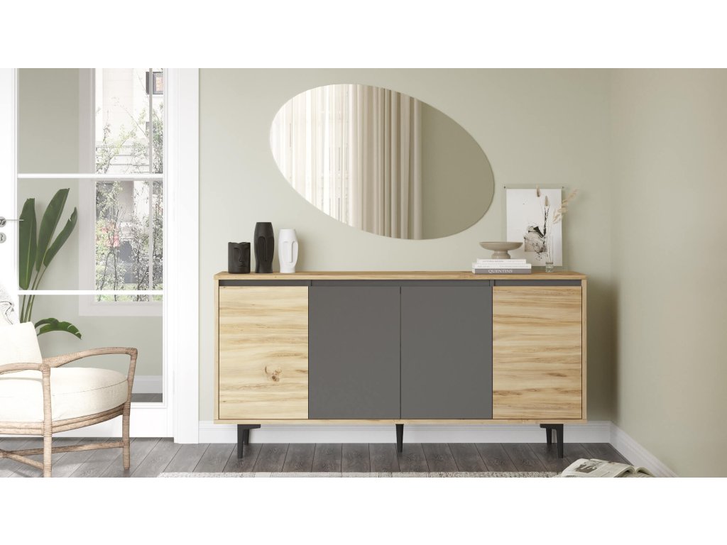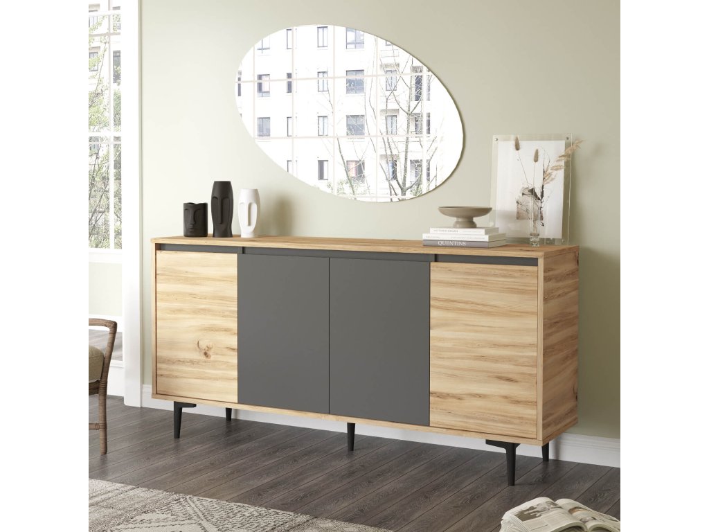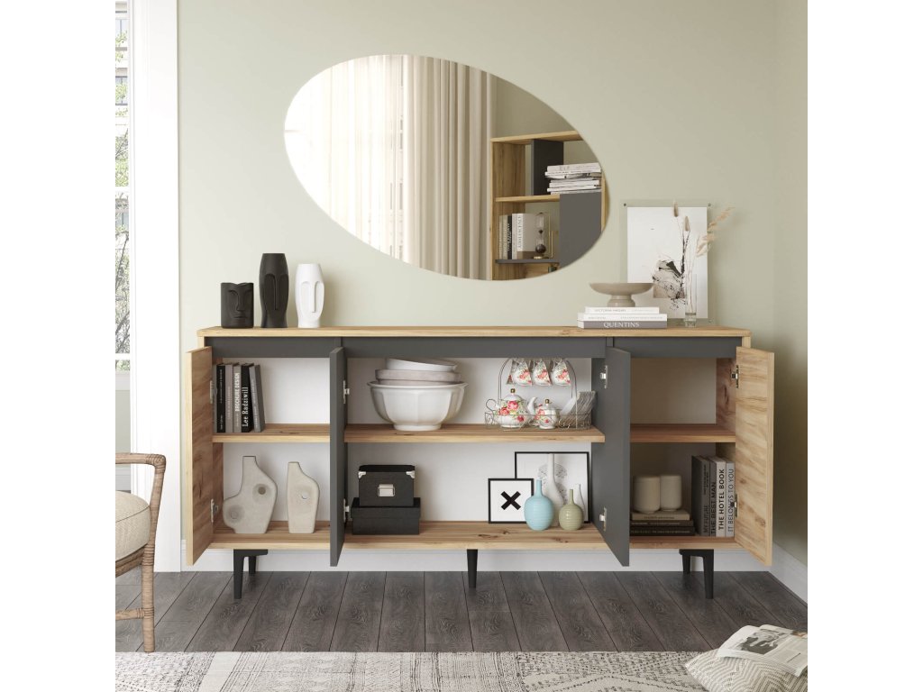 S komodou a skříňkou získáte nejen úložný prostor, ale také kousek nábytku, který se stane středobodem vašeho interiéru. Ať už ji umístíte do ložnice nebo obývacího pokoje, její jednoduchý a přitom stylový design přinese do vašeho domova nový estetický rozměr. Vytvořte si pohodlné a moderní prostředí s tímto produktem.