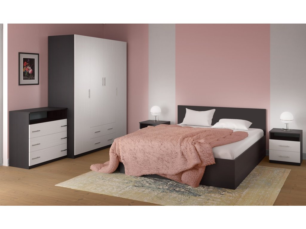 šířka: 160 cm | výška: 205 cm | hloubka: 57 cm Šatní skříň čtyřdveřová se dvěma zásuvkami je vyrobena z LTD desky odolné vůči poškrábání, korpus je v barvě wenge tmavá a čela...