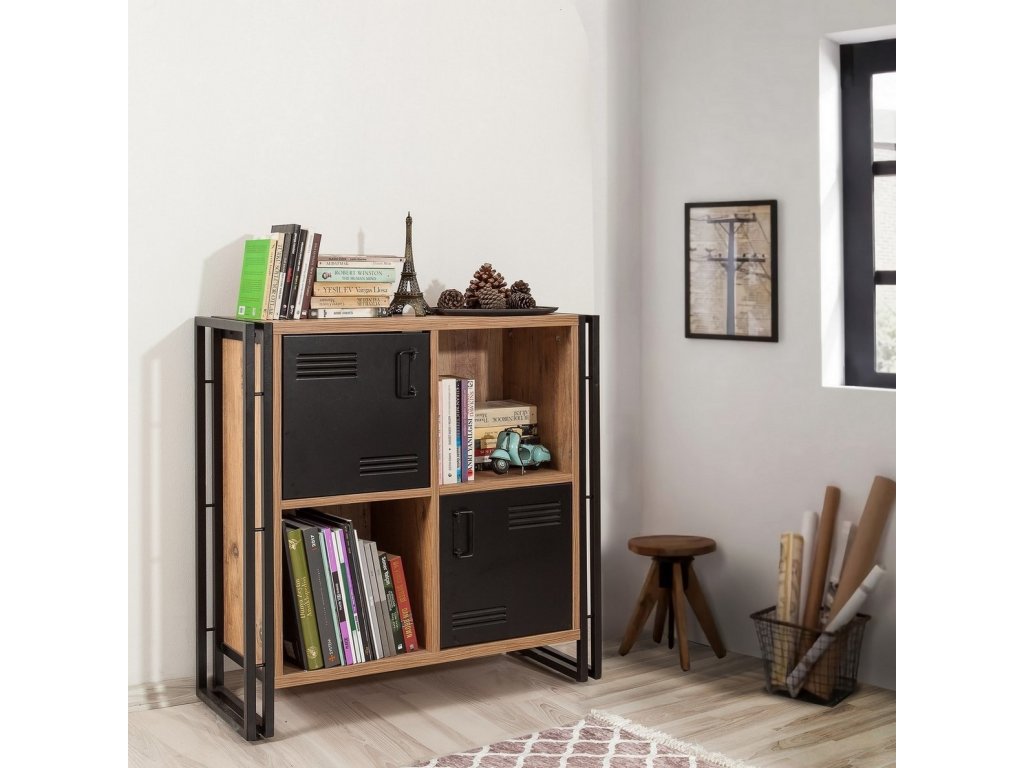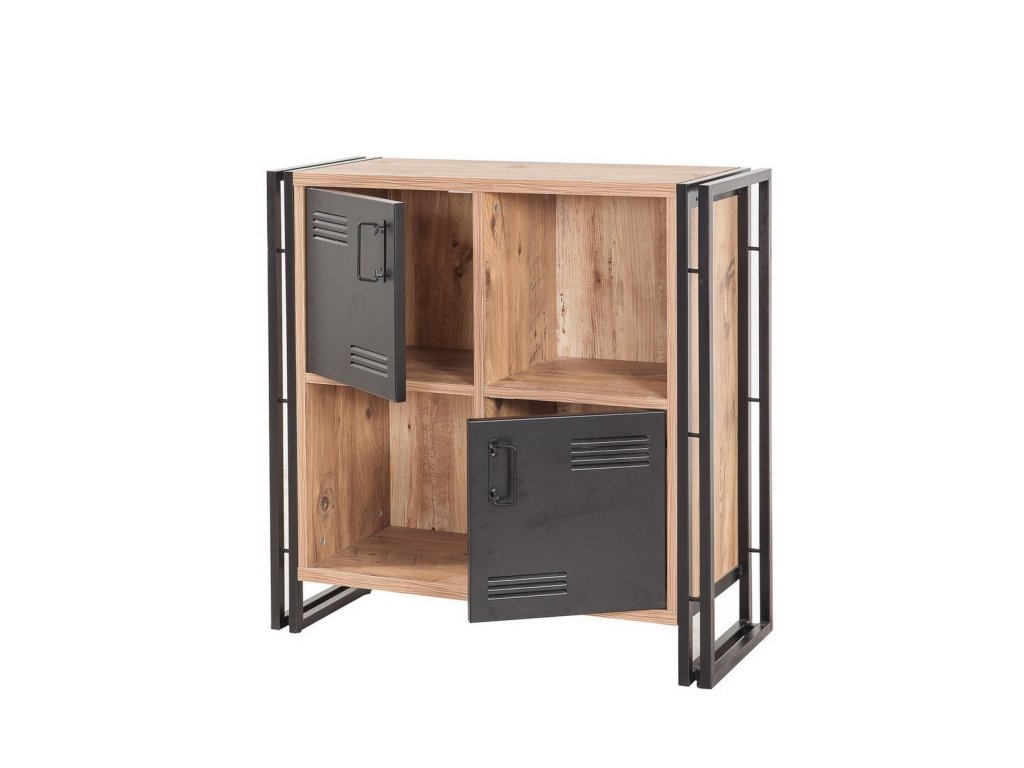 Komoda industriální 2-dveřová HALKIR borovice/černá