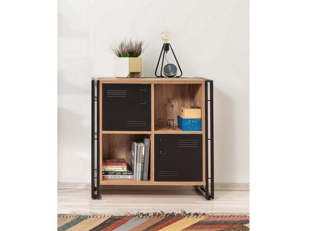 Stylová komoda-knihovna s dvířky, navržená pro moderní obývací pokoje. Díky kombinaci černé barvy a dekoru borovice přináší do vašeho interiéru sofistikovaný vzhled, který skvěle ladí s jakýmkoli stylem. Materiál je Melamin, VT laminát a kov. Komoda nabízí praktický úložný prostor díky 2 skříňkám a 2 policím. Jeho robustní konstrukce s tloušťkou materiálu 18 mm a pevné kovové detaily zajišťují dlouhou životnost a stabilitu nábytku. Dodáváme v demontovaném stavu.