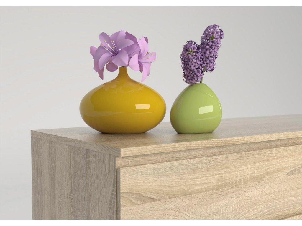 Komoda Nibby je skvělou variantou jak rošířit úložný prostor, kterého v každé domácnosti není nikdy dost. Komoda Nibby nabízí spoustu možností využití nejen v ložnici nebo obývacím pokoji, ale také v dětském pokoji, nebo v předsíni. Můžete do ní uložit např. oblečení, hračky, dokumenty, deskové hry, sbírku CD, nebo nezaložené fotografie. Komodu nabízíme v několika dekorech a jistě si najdete tu pravou, která bude ladit s Vaším interiérem. Komoda je vyrobená z lamina, které je velmi snadné na údržbu. Při výrobě je kladen důraz na ekologii. Je vyráběna v souladu s ohledy na životní prostředí a řadí se tak k eco-friendly výrobkům. Komoda je dodávaná v demontu. Součástí balení je montážní návod včetně všech potřebných spojovacích prvků. Vyobrazené doplňky a dekorace nejsou v ceně.