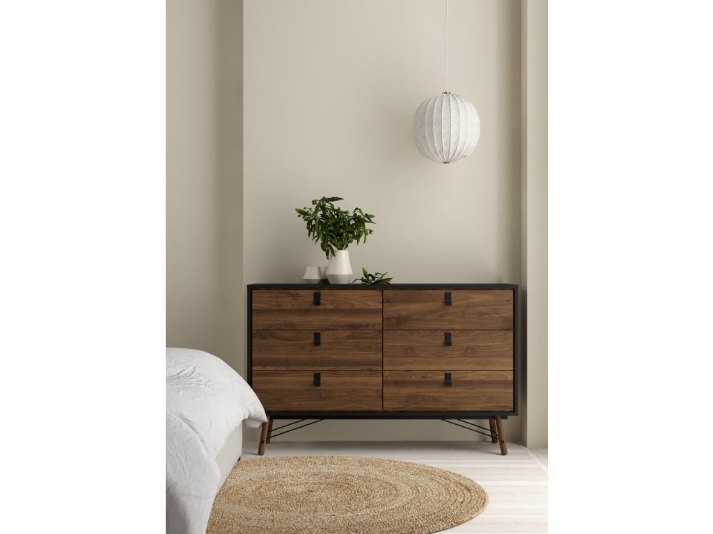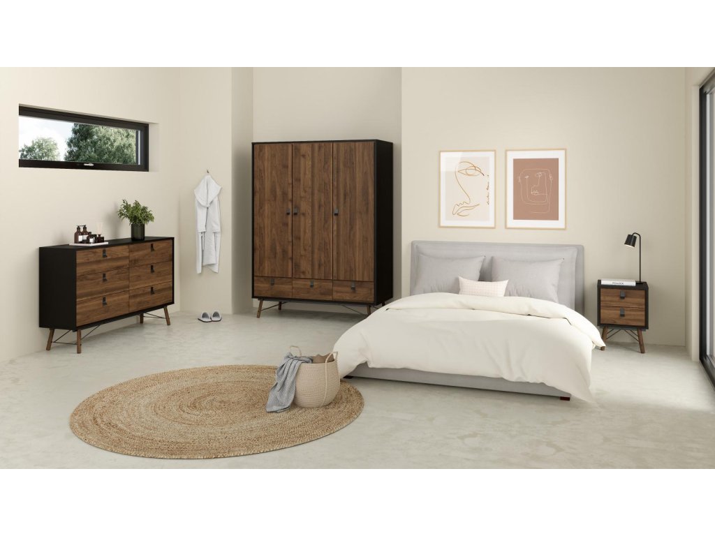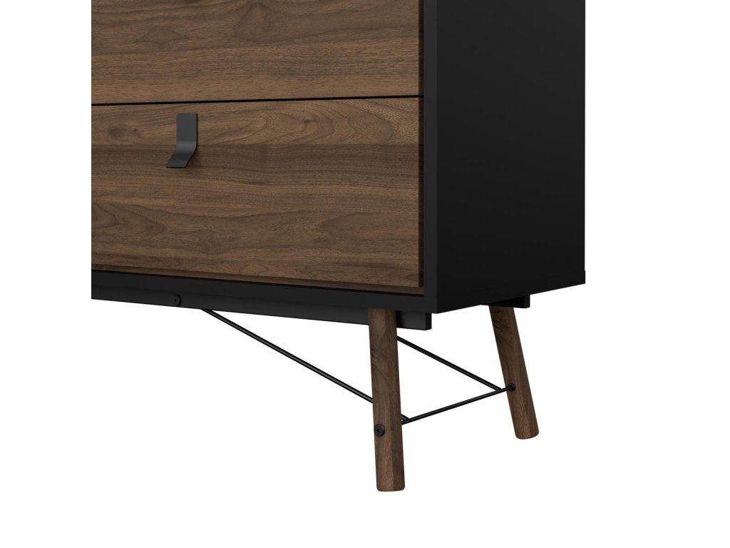 Kolekce Rain, inspirovaná nadčasovou dánskou designovou klasikou, kombinuje retro a moderní styl a nabízí široký výběr elegantního nábytku. Vyznačuje se šikmými nohami z mořeného masivního buku v kombinaci s kovovými tyčemi, úchytkami z vysoce kvalitního hliníku s matným černým povrchem a „plovoucími čely“. Iluze plovoucích čel je dosažena kombinací 12 mm vnitřní skříňky s 18 mm vnější skříňkou. Tento jedinečný design dodává celkové estetice nádech lehkosti.