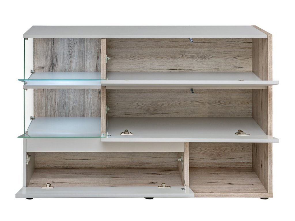 Moderní komoda je navržena podle nejnovějších trendů. Dvířka i korpus jsou vyrobeny z LTD desky v kombinaci s MDF v barvě bílá mat / perla elm. LED osvětlení je v ceně. Dodáváme v demontovaném stavu.