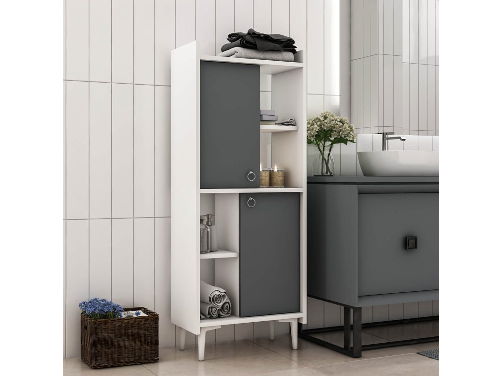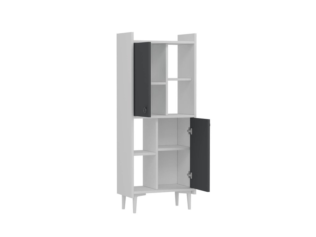 Skříňka je dodávána v demontovaném stavu s jednoduchým návodem na sestavení. Díky plastovým nožičkám je stabilní a zároveň chrání podlahu před poškrábáním. Kombinace antracitové a bílé barvy dodává obývacímu pokoji moderní a svěží vzhled. Tento kus nábytku je ideální pro všechny, kdo hledají praktické a stylové řešení pro svůj domov.
