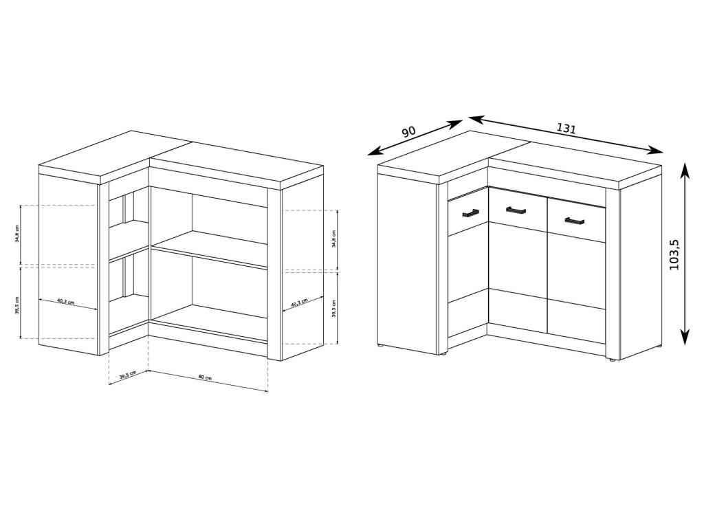 šířka: 131 cm | výška: 103,5 cm | hloubka: 90 cm Rohová komoda s rohem nalevo. Roh nalevo znamená na levé straně jsou 1 dvířka, na pravé 2 dvířka. Možnost objednání i opačné...