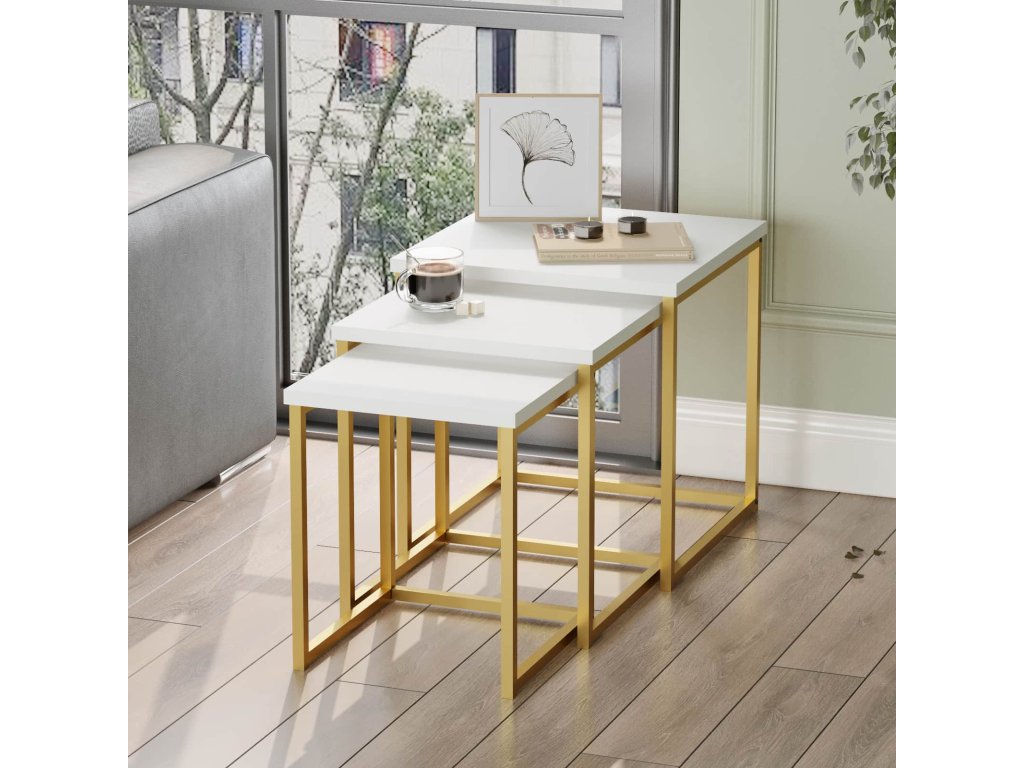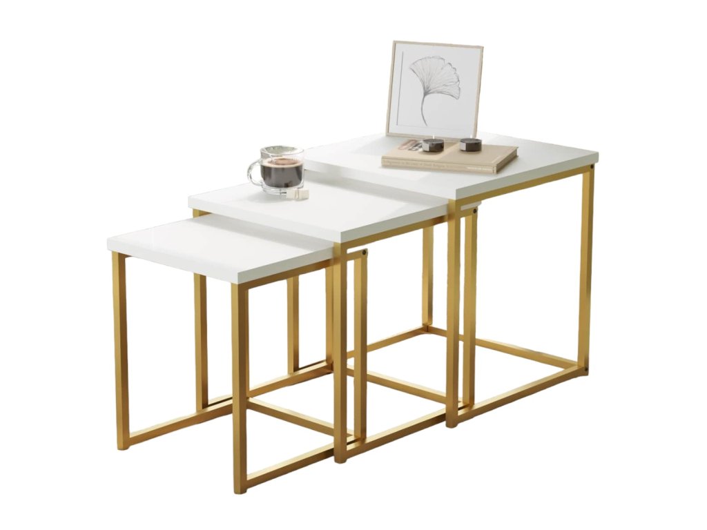 ETHEL sada příručních stolků, barva bílá/zlatá