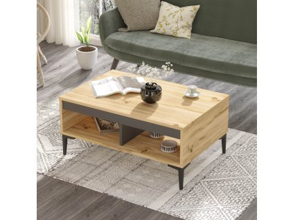 šířka: 100 cm | výška: 43,5 cm | hloubka: 52,2 cm Rozkládací konferenční stolek s úložným prostorem je vyroben z kvalitního lamina odolného proti poškrábání v barvě dub sonoma....