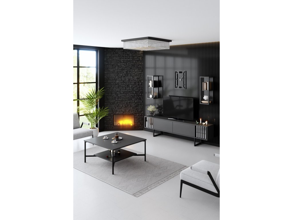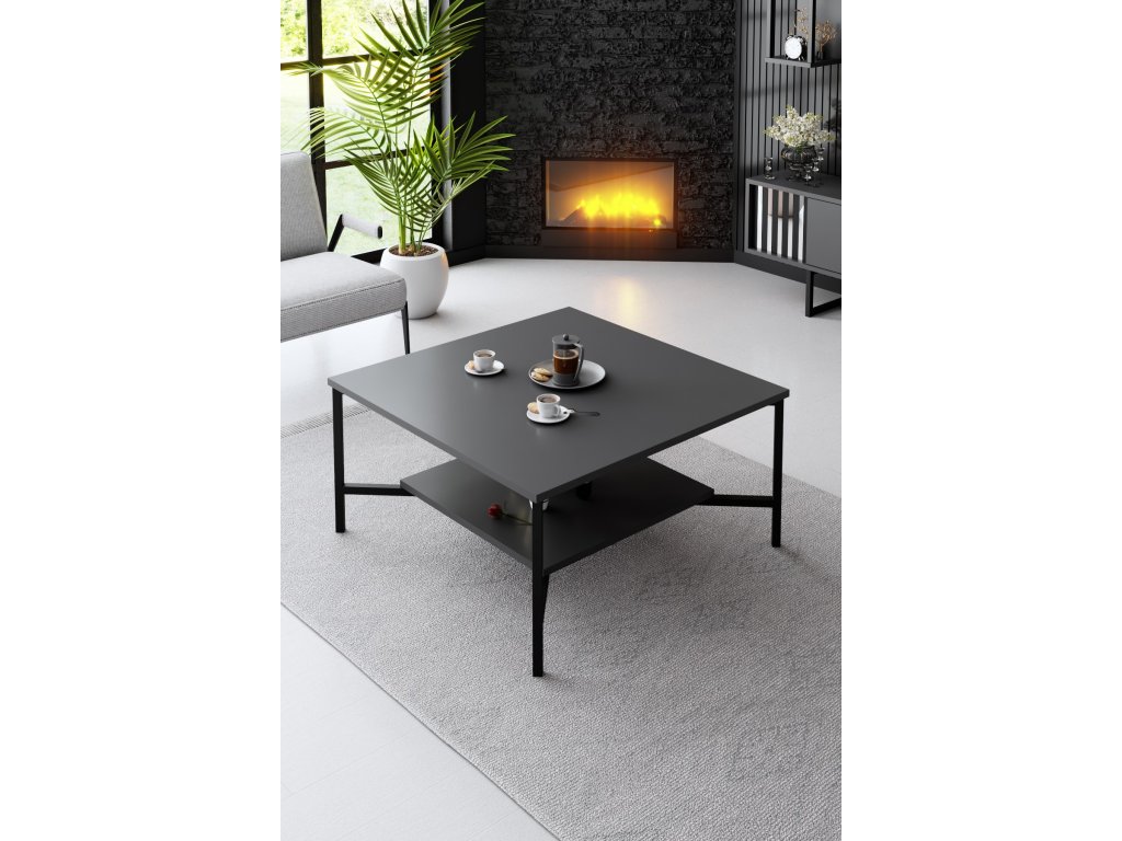 Tento konferenční stolek s kovovými nohami představuje dokonalou rovnováhu mezi stylem a funkčností. Kontrastní barvy antracitové a černé dodávají stolku nádech sofistikovanosti, díky čemuž je všestranným kusem nábytku, který bez námahy doplní jakýkoli stávající interiér.