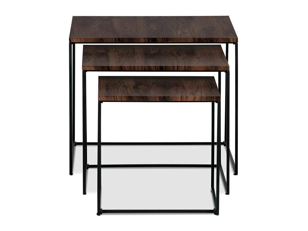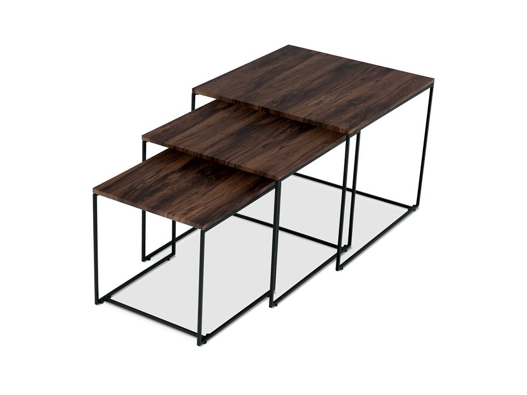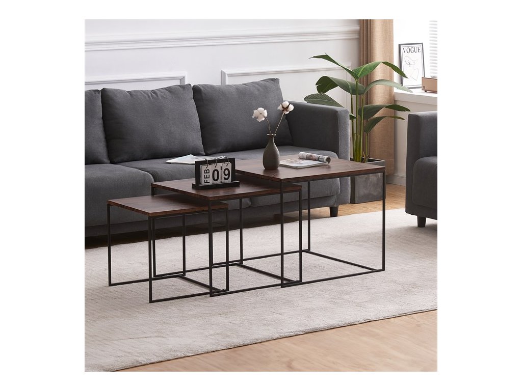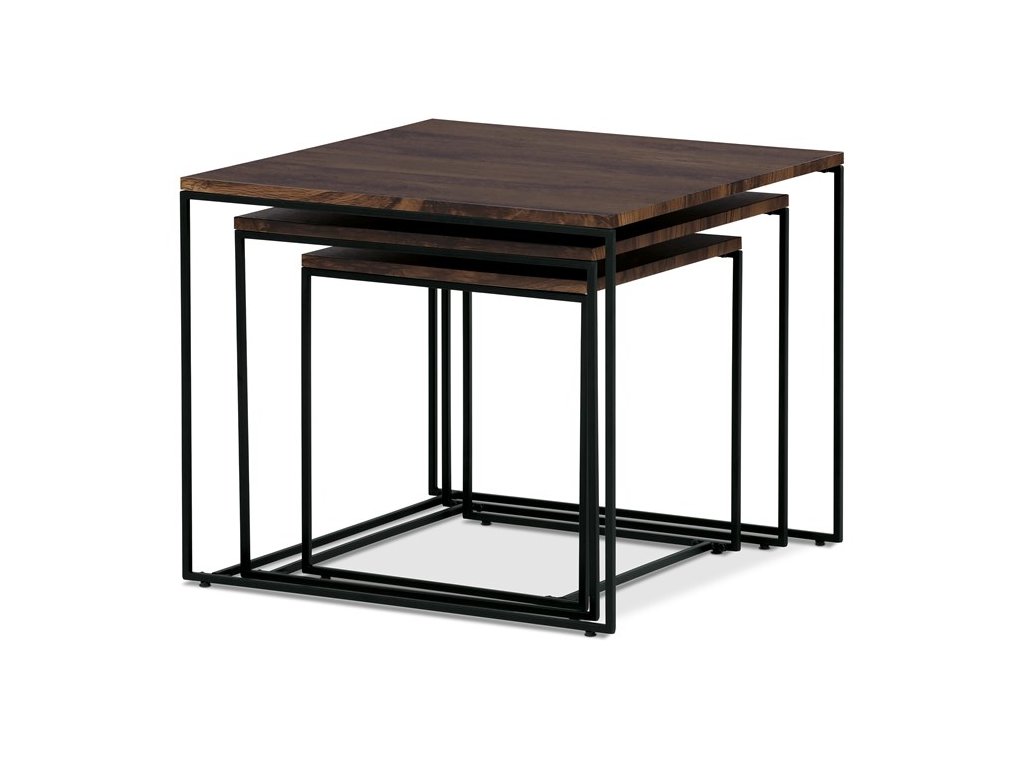 Tato sada konferenčních stolků, vyrobená proslulou značkou Autronic, pozvedne díky své industriální estetice jakýkoli prostor a bez problémů se začlení do kancelářských salonků, konferenčních místností nebo do srdce vašeho obývacího pokoje. Jeho čtvercová deska z MDF, zdobená sytým dekorem ořechu, v sobě snoubí odolnost se stylovým vkusem, díky čemuž vynikne jako výrazný kousek uprostřed jakéhokoli interiéru. Hnědý odstín desky stolu elegantně kontrastuje s kruhovými černými kovovými nohami, které tvoří pevný základ, jenž potvrzuje spolehlivost i noblesu.