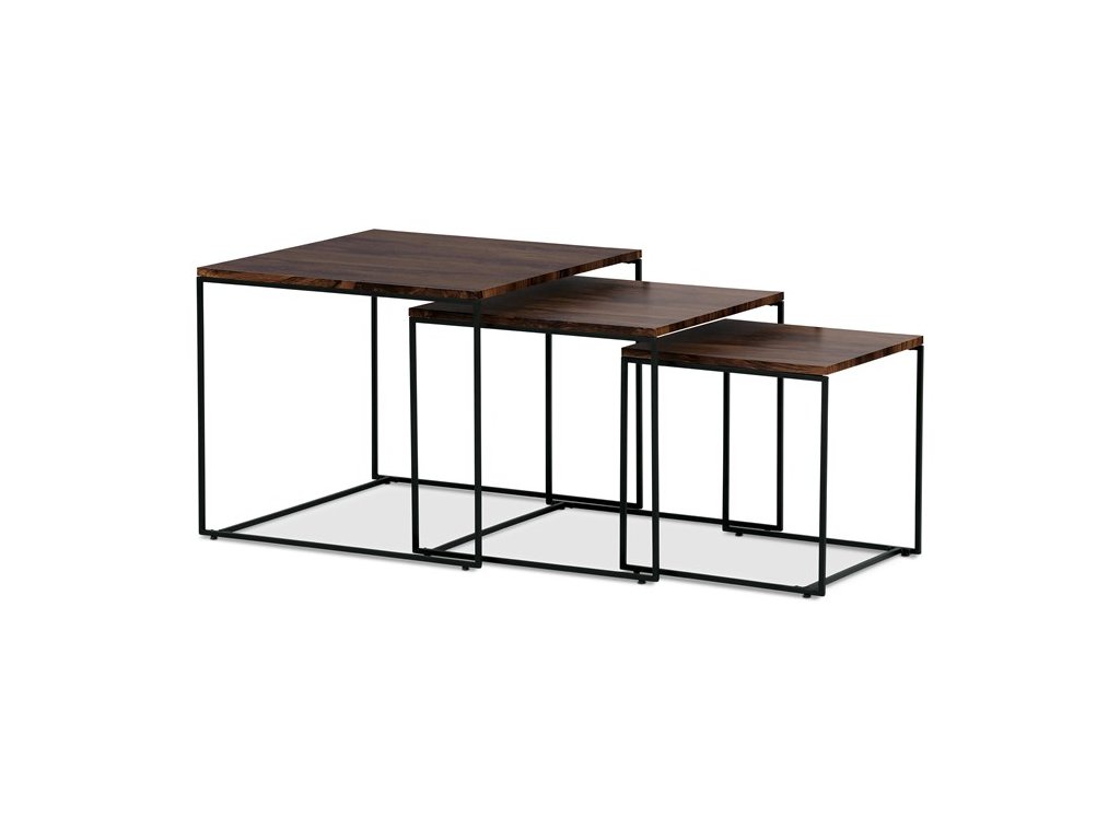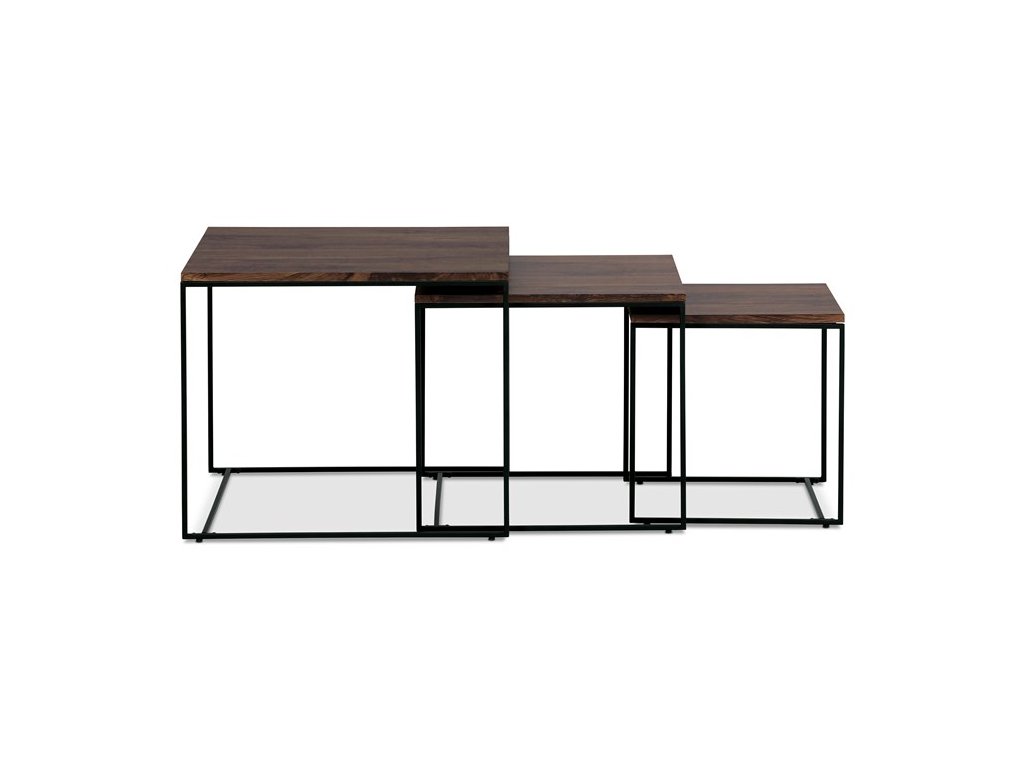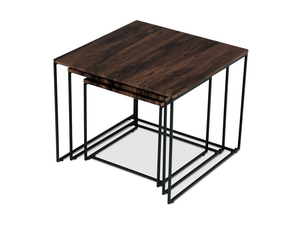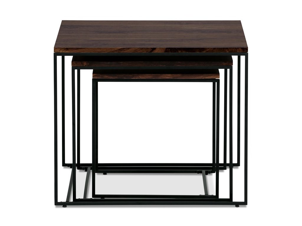 Tato sada konferenčních stolků, vyrobená proslulou značkou Autronic, pozvedne díky své industriální estetice jakýkoli prostor a bez problémů se začlení do kancelářských salonků, konferenčních místností nebo do srdce vašeho obývacího pokoje. Jeho čtvercová deska z MDF, zdobená sytým dekorem ořechu, v sobě snoubí odolnost se stylovým vkusem, díky čemuž vynikne jako výrazný kousek uprostřed jakéhokoli interiéru. Hnědý odstín desky stolu elegantně kontrastuje s kruhovými černými kovovými nohami, které tvoří pevný základ, jenž potvrzuje spolehlivost i noblesu.
