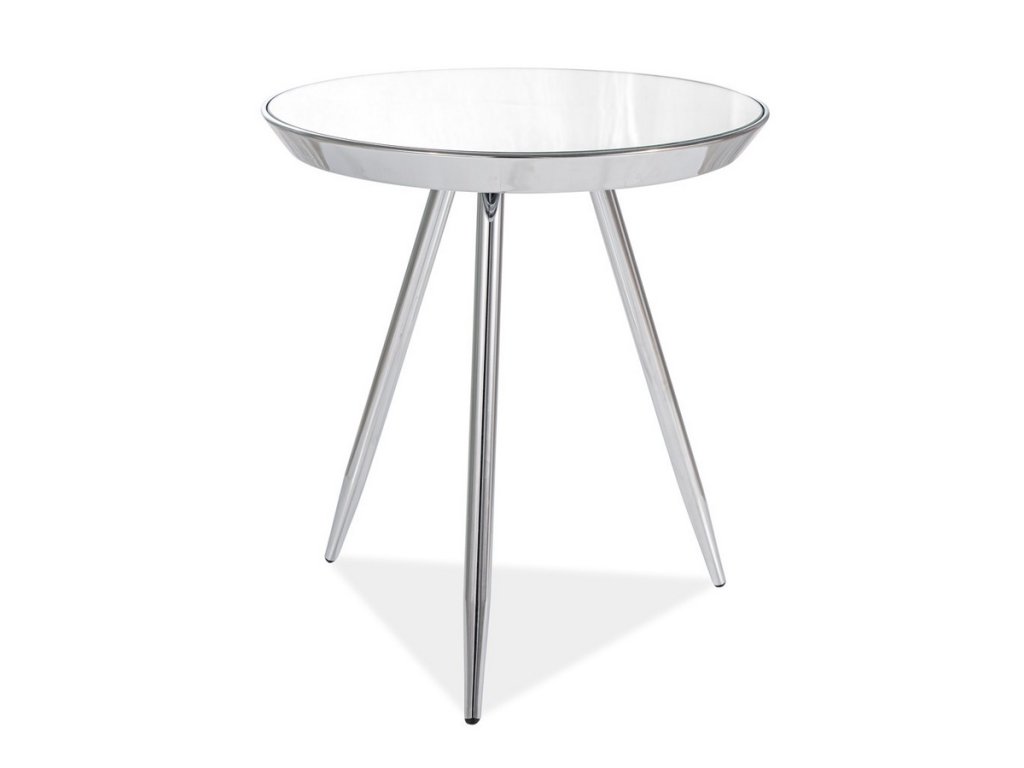 Kulatý konferenční stolek v moderním stylu glamour. Konstrukce je z kovu - chróm, na vrchní desce je zrcadlo. Tento stylový kousek v jednoduchém designu se bude vyjímat v každém interiéru. Dodáváme v demontovaném stavu.Doplňkové parametry