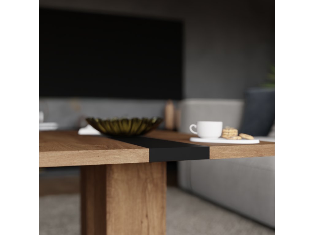 Konferenční stolek Boris je atraktivní stolek, který je vyrobený z lamina ve velmi oblíbeném a moderním dekoru dub lefkas s černým pruhem uprostřed. Stolek je dostatečně velký na vše, co si budete potřebovat odložit. Hrnek s kávou nebo čajem, talíř, knihu, telefon, notebook, nebo klidně i unavené nohy po celodenním maratonu. Stolek je dodávaný v demontu. Součástí balení je montážní plánek včetně všech potřebných spojovacích materiálů.