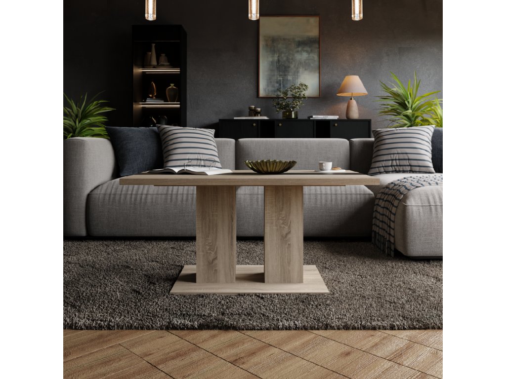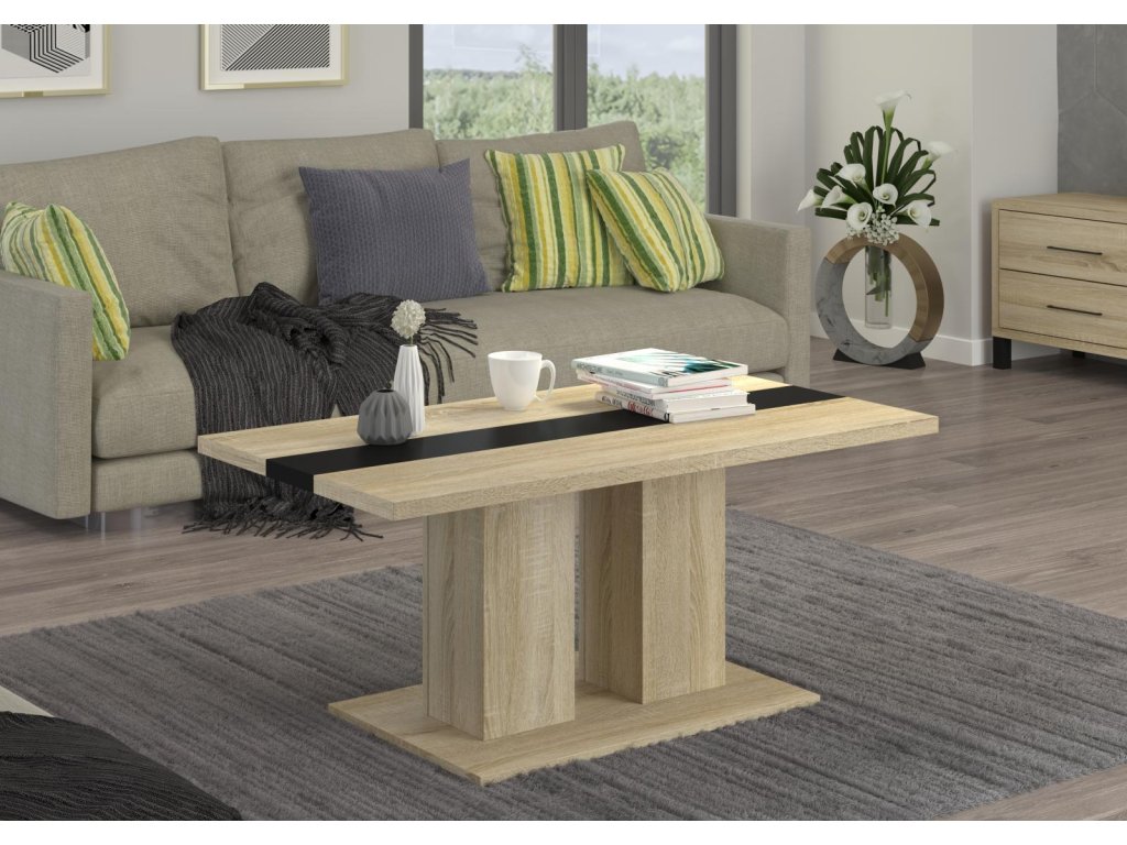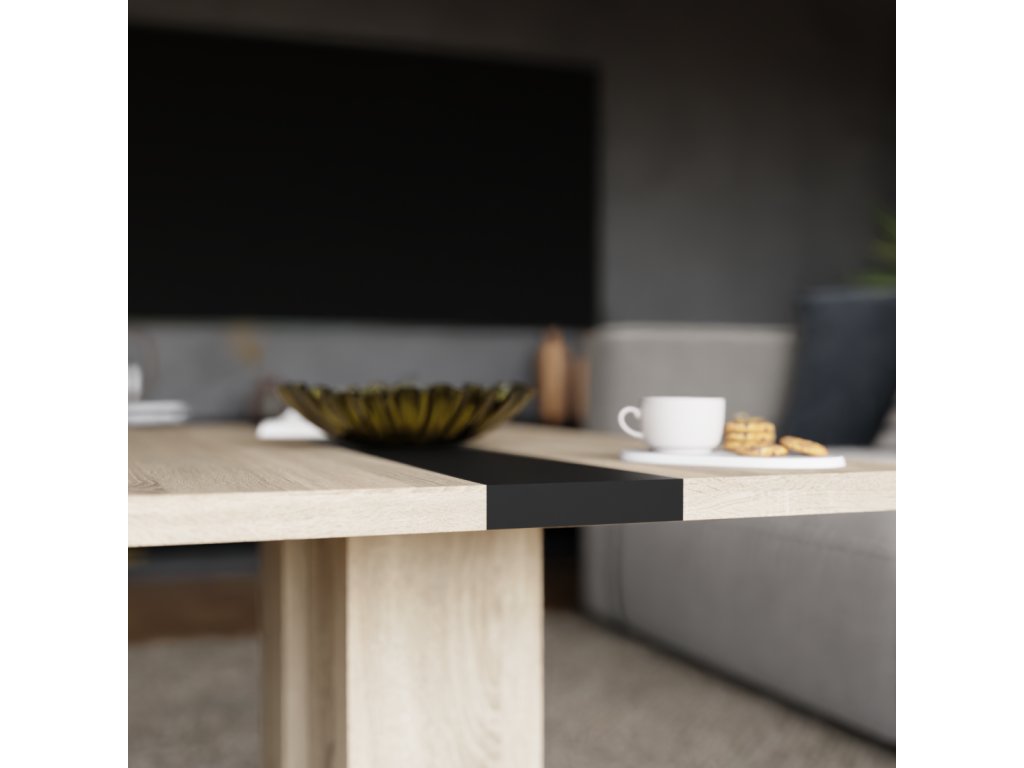 Konferenční stolek Boris je atraktivní stolek, který je vyrobený z lamina ve velmi oblíbeném a moderním dekoru dub sonoma s černým pruhem uprostřed. Stolek je dostatečně velký na vše, co si budete potřebovat odložit. Hrnek s kávou nebo čajem, talíř, knihu, telefon, notebook, nebo klidně i unavené nohy po celodenním maratonu. Stolek je dodávaný v demontu. Součástí balení je montážní plánek včetně všech potřebných spojovacích materiálů.