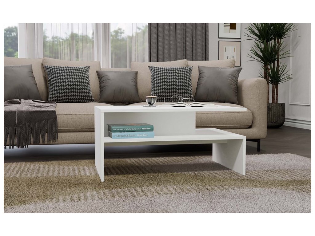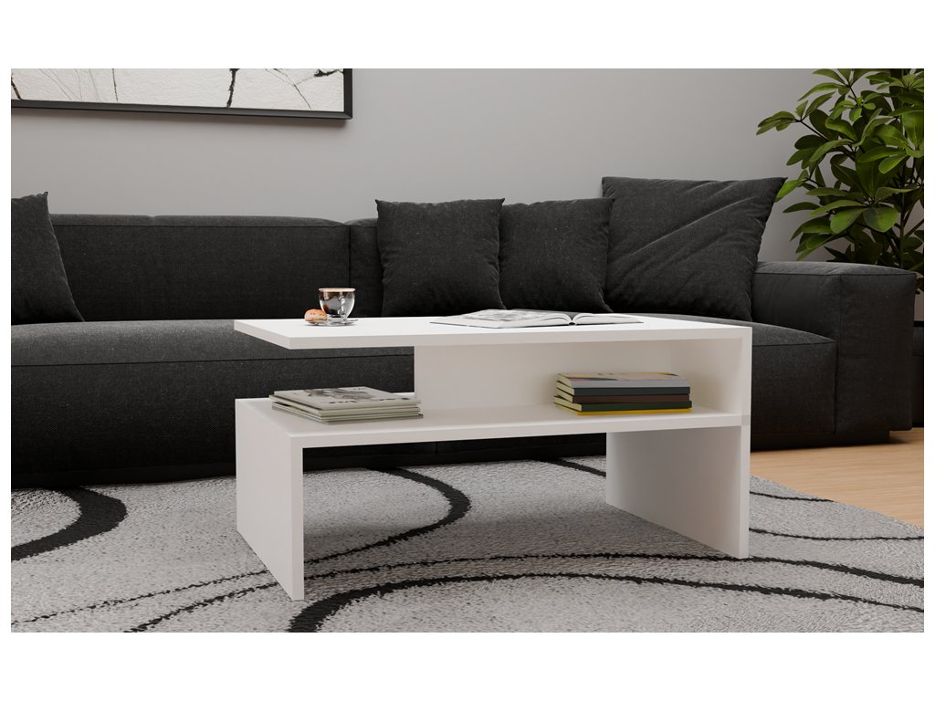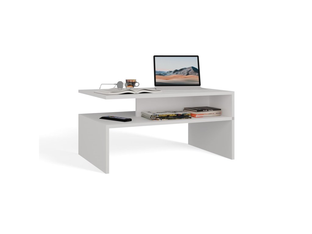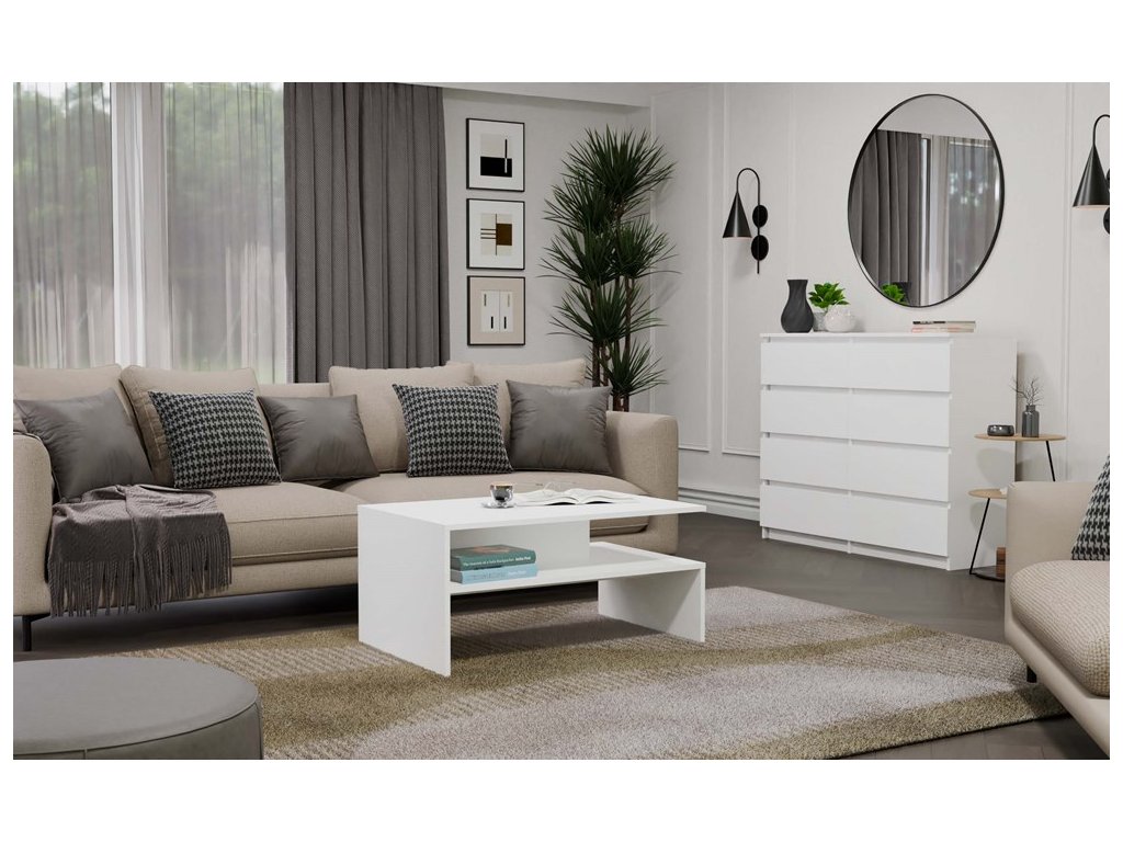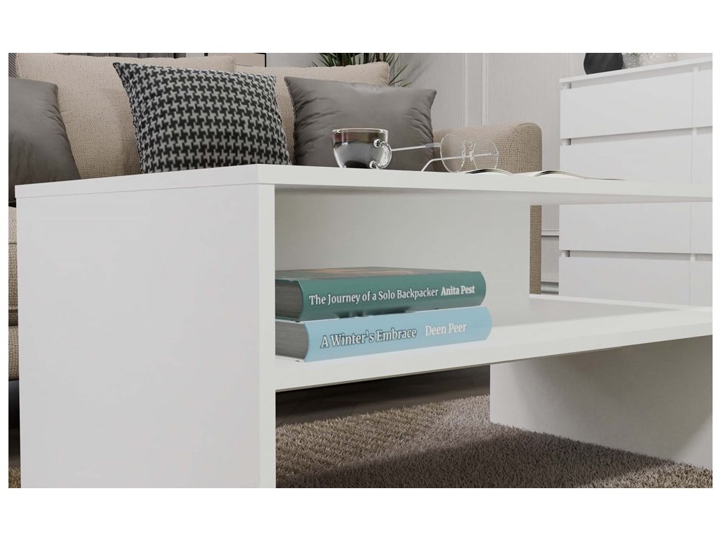 šířka: 105 cm | výška: 42 cm | hloubka: 50 cm Moderní konferenční stolek. Nožky jsou z přírodního dřeva, deska z MDF, barevné provedení bílá. Dodáváme v demontovaném stavu....