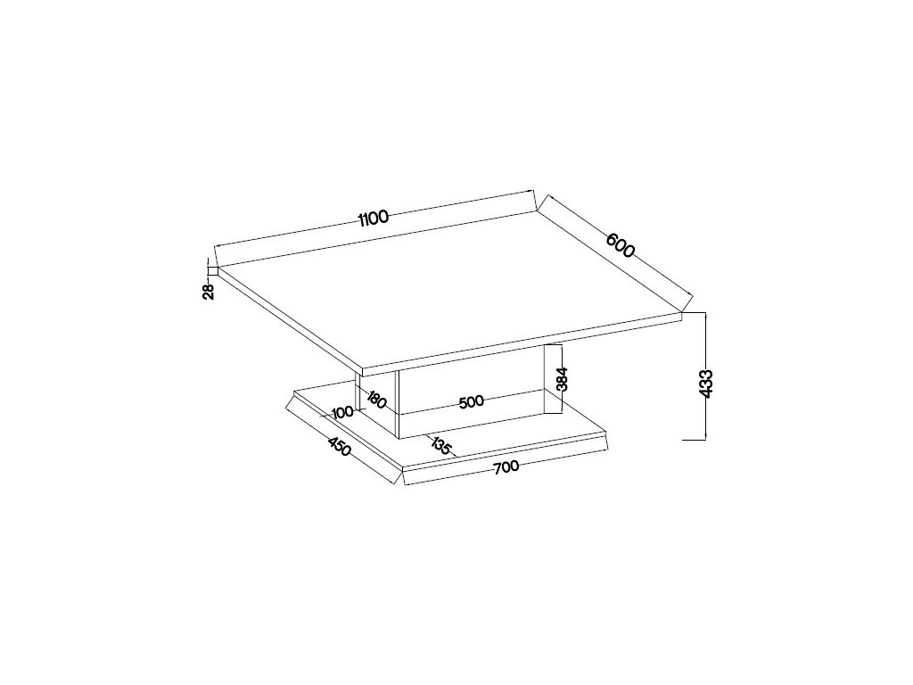 šířka: 60 cm | výška: 42 cm Konferenční stolek s policí je vyroben z desky MDF v barvě bílá, nožky jsou z masivu borovice. Dodáváme v demontovaném stavu.