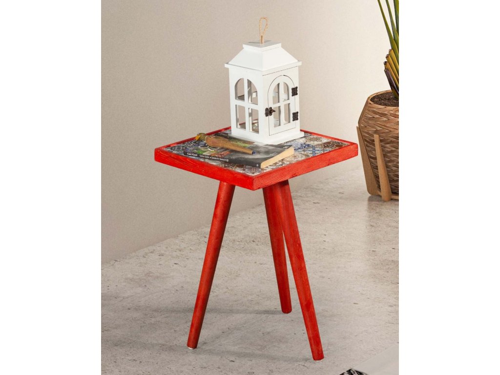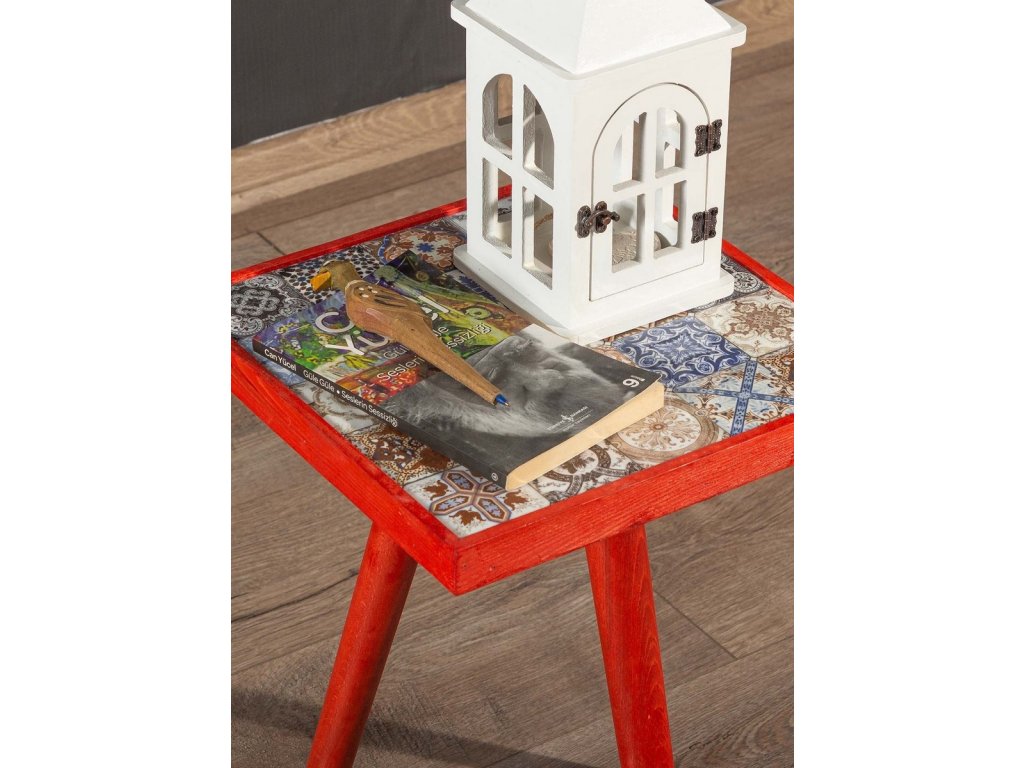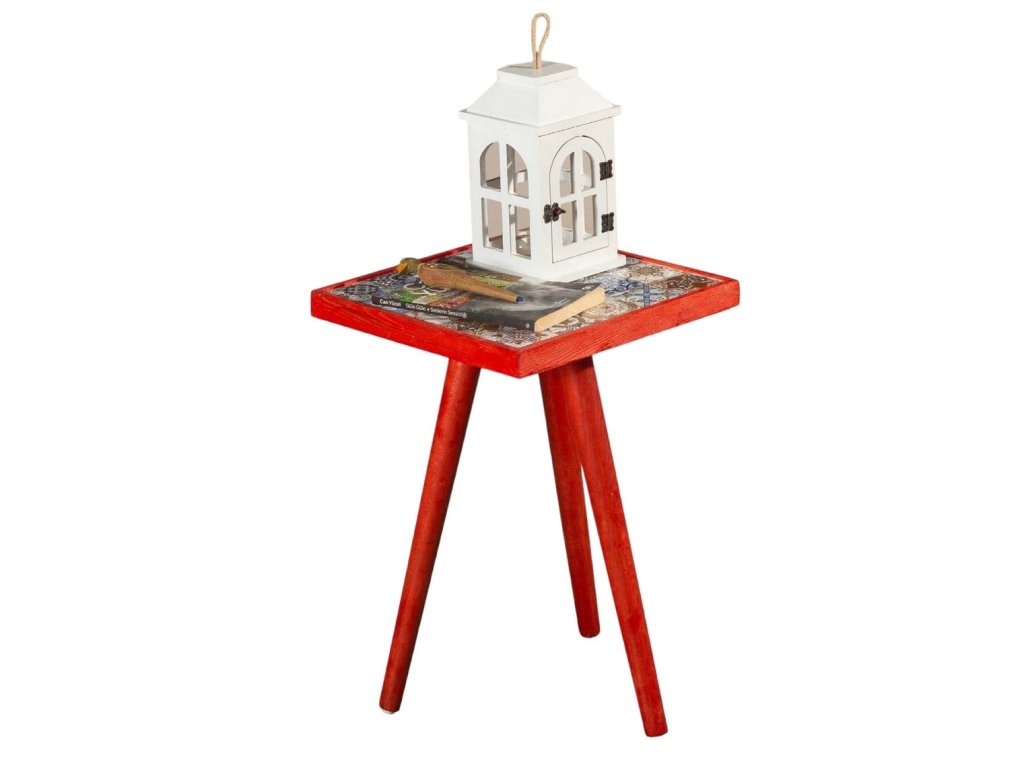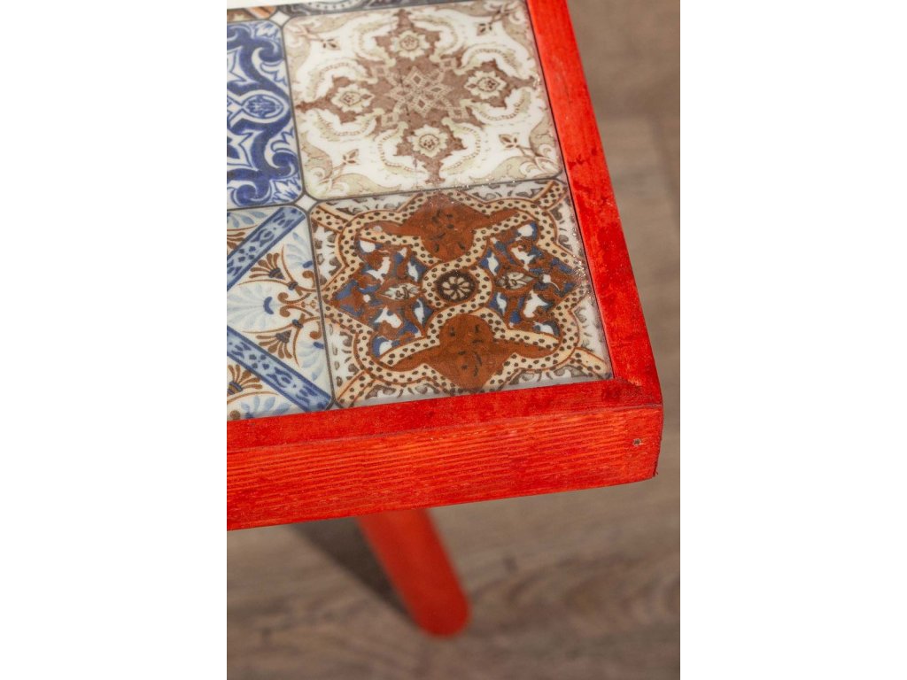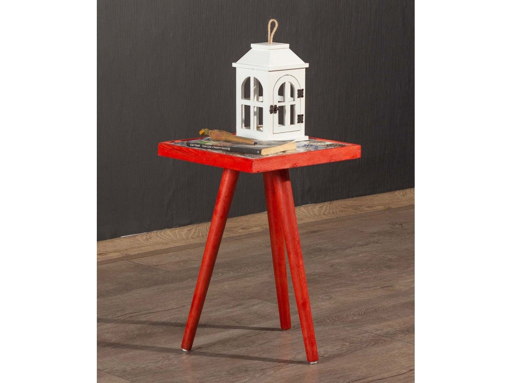 Konferenční stolek je vyroben z borovicového dřeva, barevné provedení je červená. Horní odkládací deska je keramická s rustikálním vzorem. Dodáváme v demontovaném stavu.Doplňkové parametry