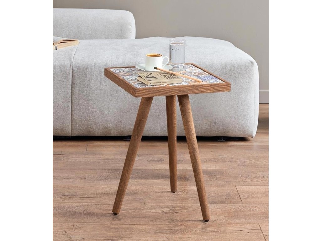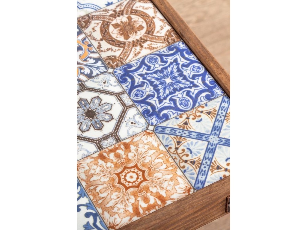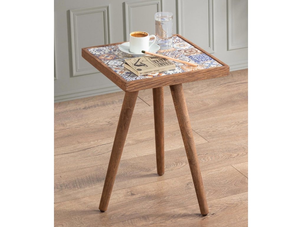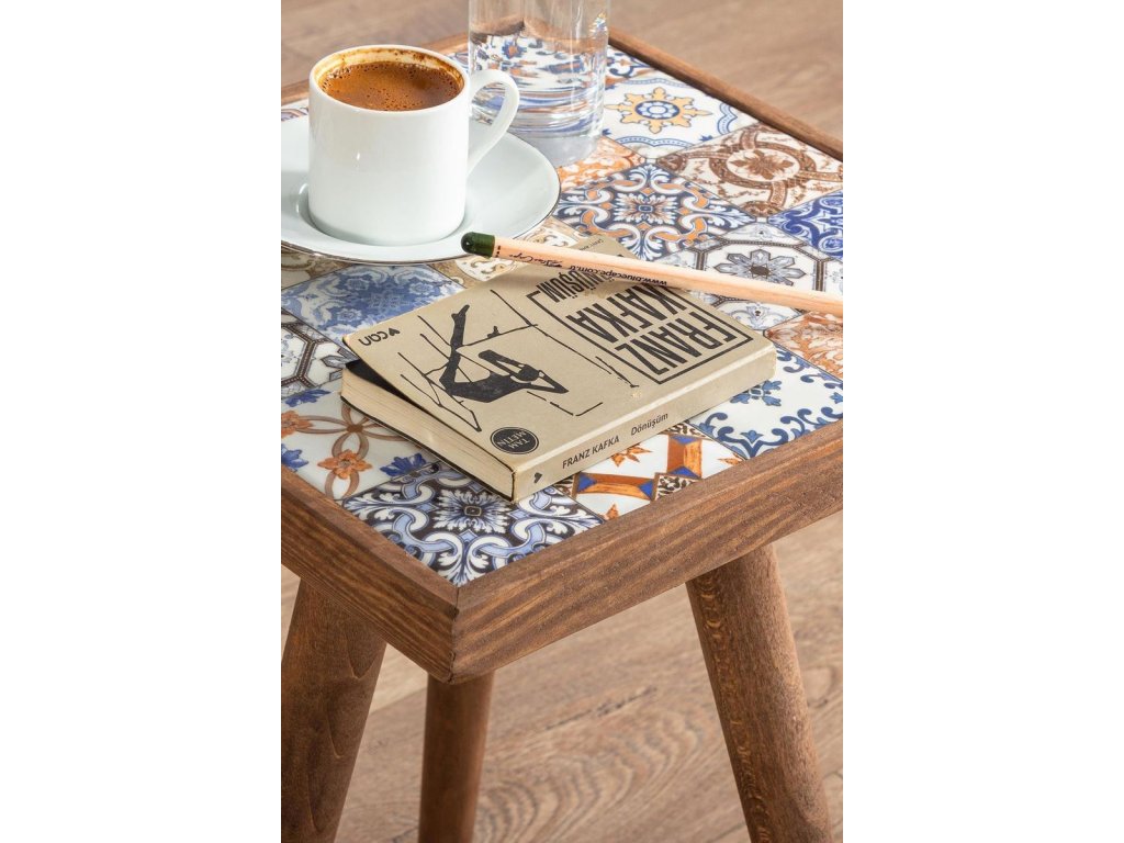 Konferenční stolek je vyroben z borovicového dřeva v barevném provedení vlašský ořech. Horní odkládací deska je keramická s rustikálním vzorem. Dodáváme v demontovaném stavu.Doplňkové parametry