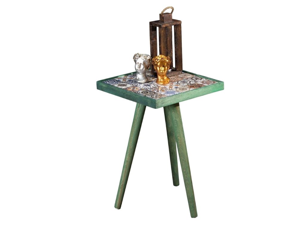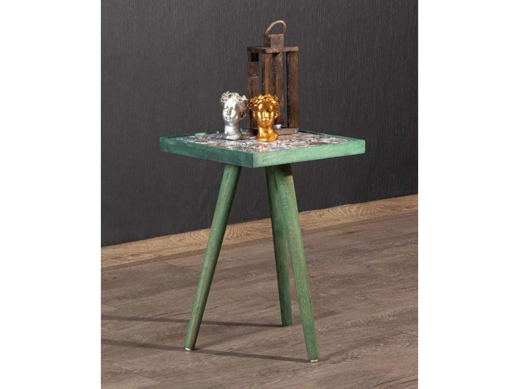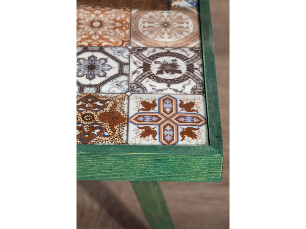 Konferenční stolek je vyroben z borovicového dřeva, barevné provedení je zelená. Horní odkládací deska je keramická s rustikálním vzorem. Dodáváme v demontovaném stavu.Doplňkové parametry
