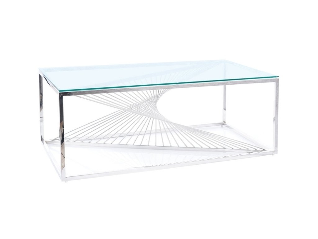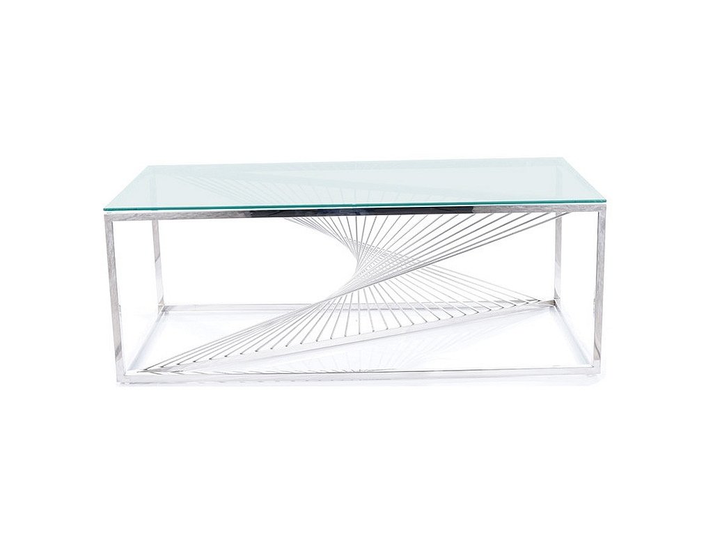 Konferenční stolek v moderním stylu glamour. Konstrukce je z nerezové oceli ve stříbrné barvě, vrchní deska je z tvrzeného skla. Tento stylový kousek v netradičním designu se bude vyjímat v každém interiéru. Dodáváme v demontovaném stavu.Doplňkové parametry