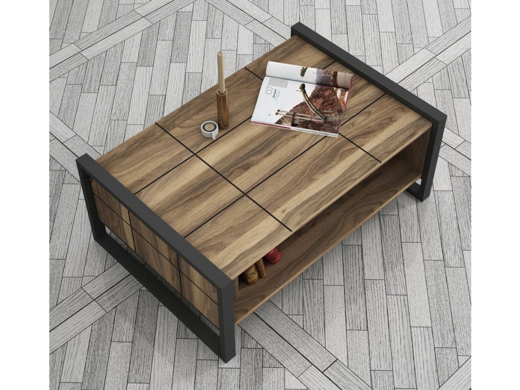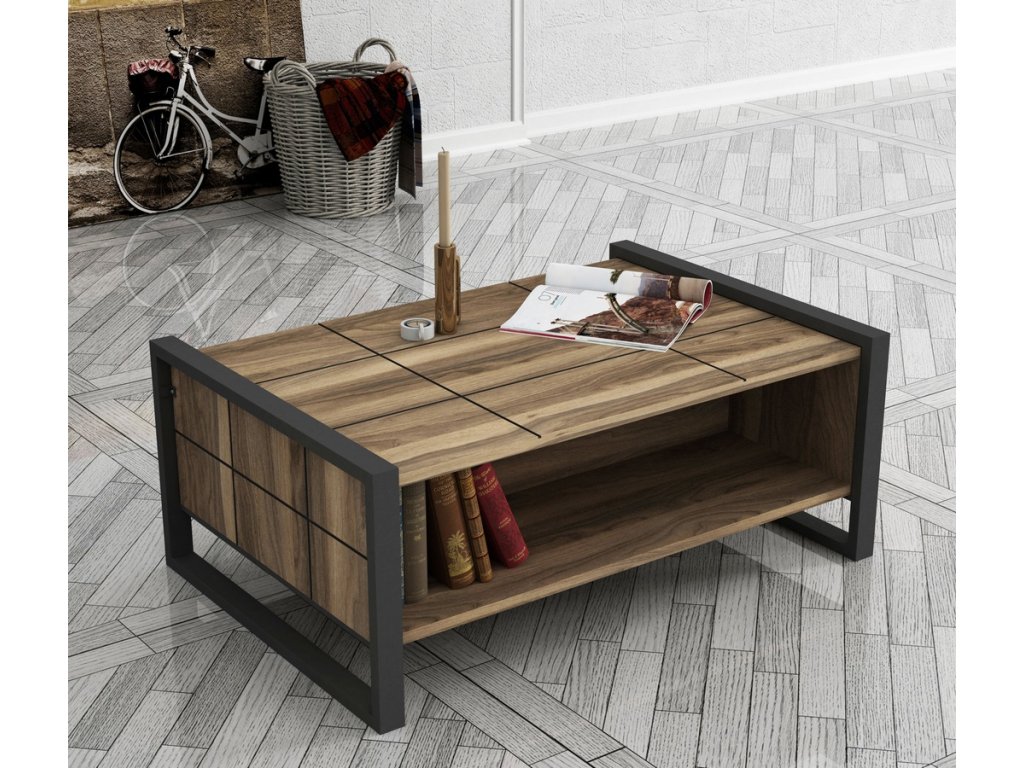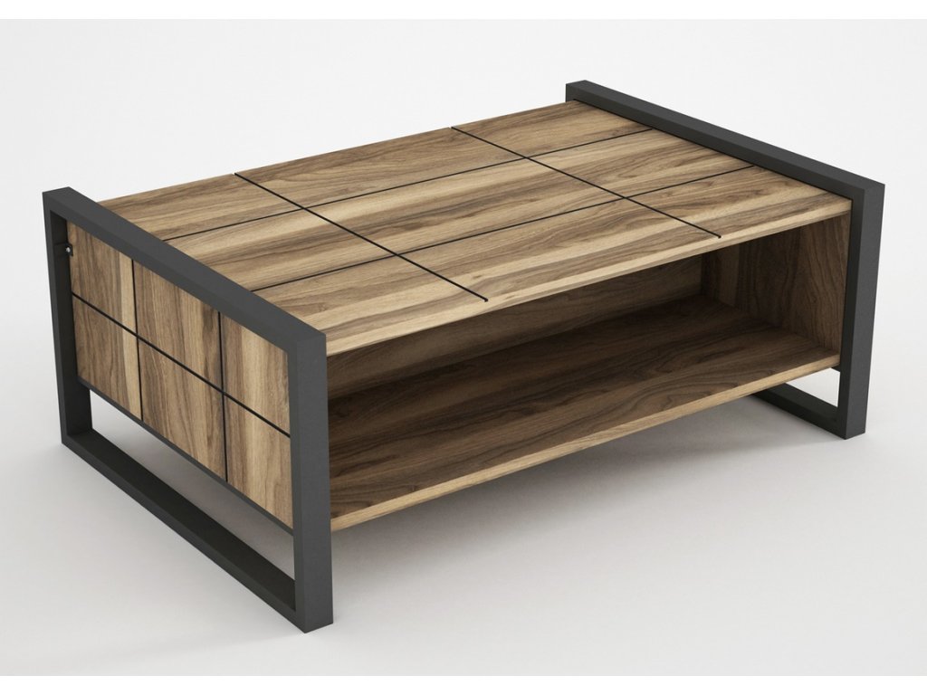 Konferenční stolek je vyroben z kvalitního lamina o tl.18 mm hraněné PVC páskou, odolného proti poškrábání v barvě vlašský ořech. Stolek je vsazen do kovových rámů, které slouží jako nohy stolu. Dodáváme v demontovaném stavu.Doplňkové parametry