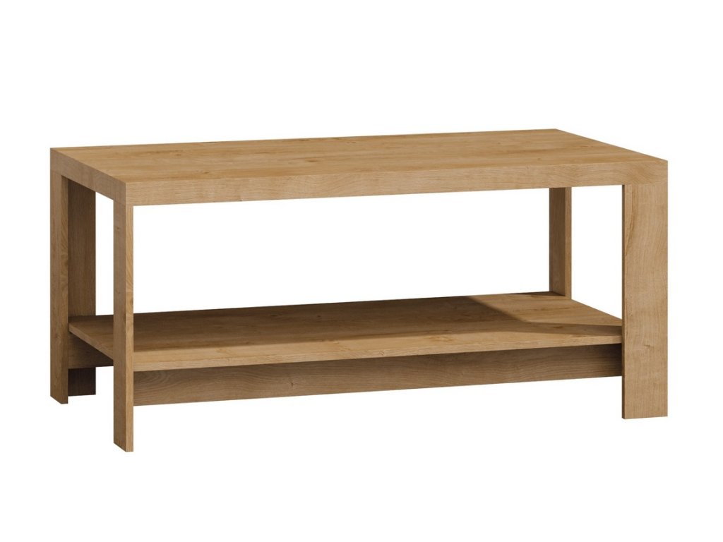 Konferenční stolek. Jedná se o stylovou kolekci nábytku moderního stylu, který je vhodný do obývacího pokoje a ložnice. Barevné provedení dub ribbeck. Nábytek je vyroben z kvalitního lamina 16 mm, některé desky jsou zesíleny na 48 mm, vše ohraničené ABS páskou. Dodáváme v demontovaném stavu.Doplňkové parametry
