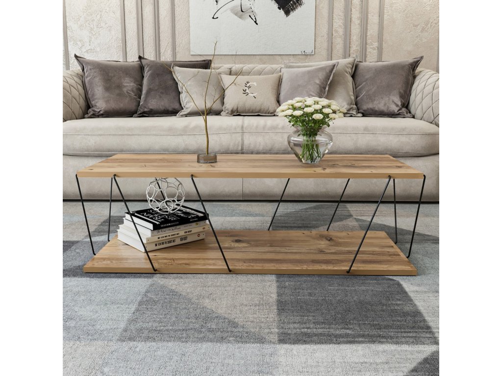 Elegantní konferenční stolek navržený v industriálním stylu, ideální pro každý moderní obývací pokoj. Kombinace černé kovové konstrukce a dekoru borovice dodává stolku sofistikovaný vzhled, který zaujme na první pohled. Materiál je Melamin, VT laminát (18 mm) a kov. Kvalitní laminátová deska zajišťují odolnost a dlouhou životnost. Dodáváme v demontovaném stavu.
