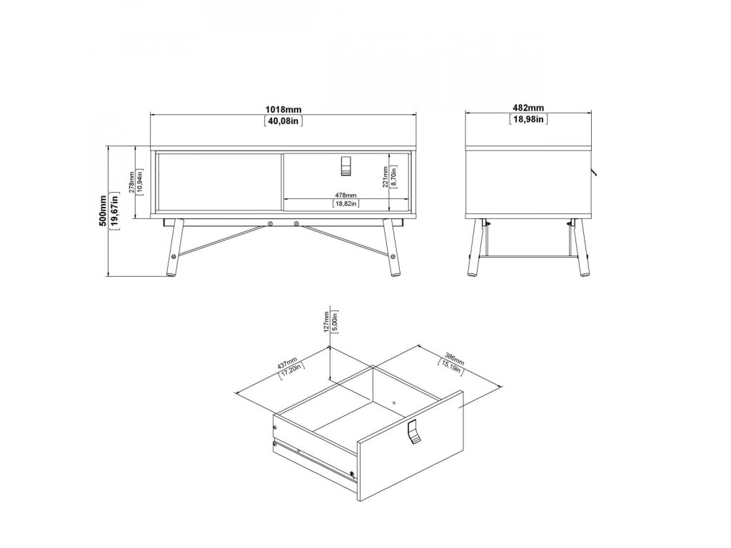 šířka: 60 cm | výška: 42 cm Konferenční stolek s policí je vyroben z desky MDF v barvě bílá, nožky jsou z masivu borovice. Dodáváme v demontovaném stavu.