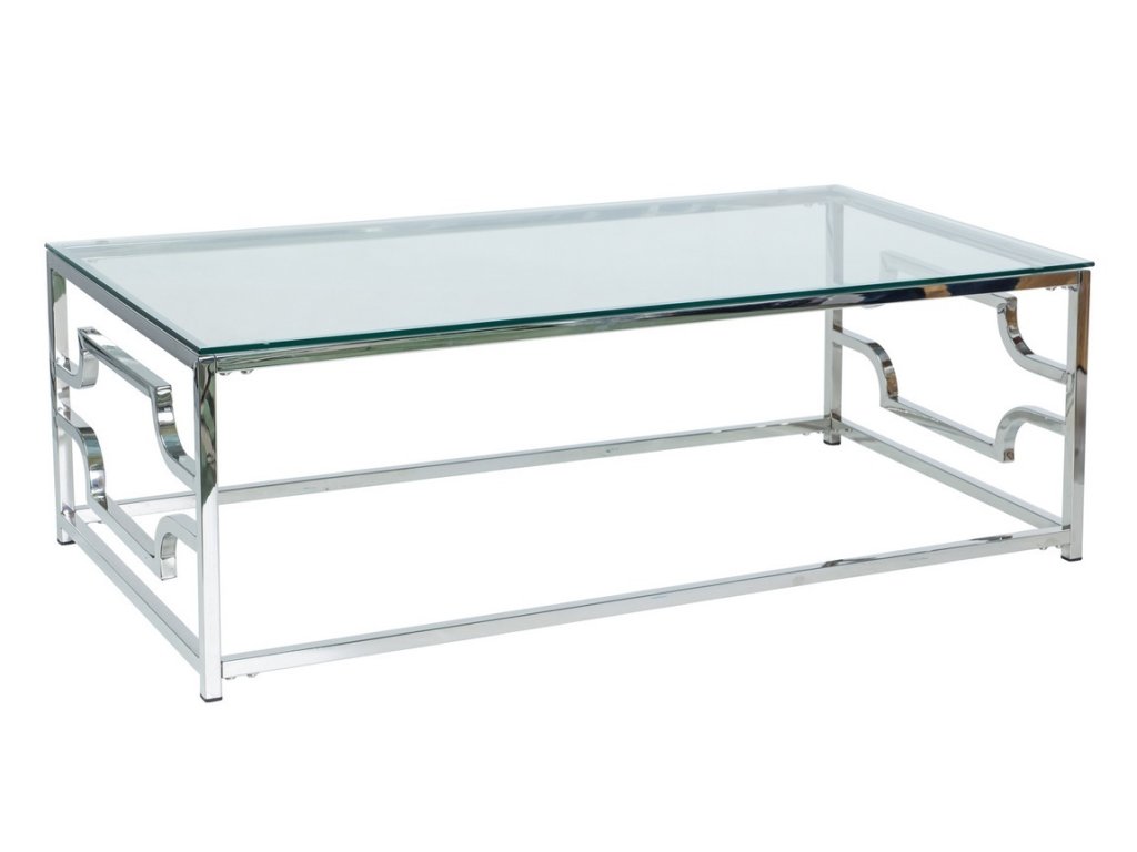 Konferenční stolek v moderním stylu glamour. Konstrukce je z nerezové oceli, vrchní deska je z tvrzeného skla. Tento stylový kousek v netradičním designu se bude vyjímat v každém interiéru. Dodáváme v demontovaném stavu.Doplňkové parametry
