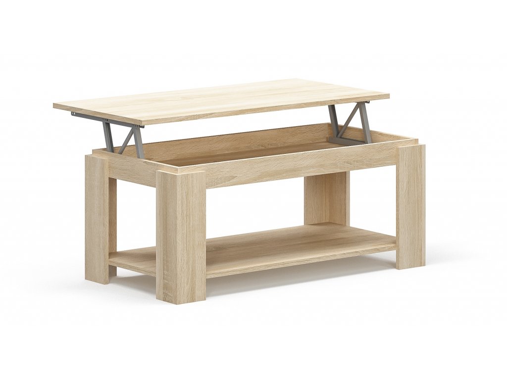 Rozkládací konferenční stolek s úložným prostorem je vyroben z kvalitního lamina odolného proti poškrábání v barvě dub sonoma. Horní deska stolu se dá vyzdvihnout, a je možné takto stůl používat i jako pracovní či jídelní. Dodáváme v demontovaném stavu.Doplňkové parametry
