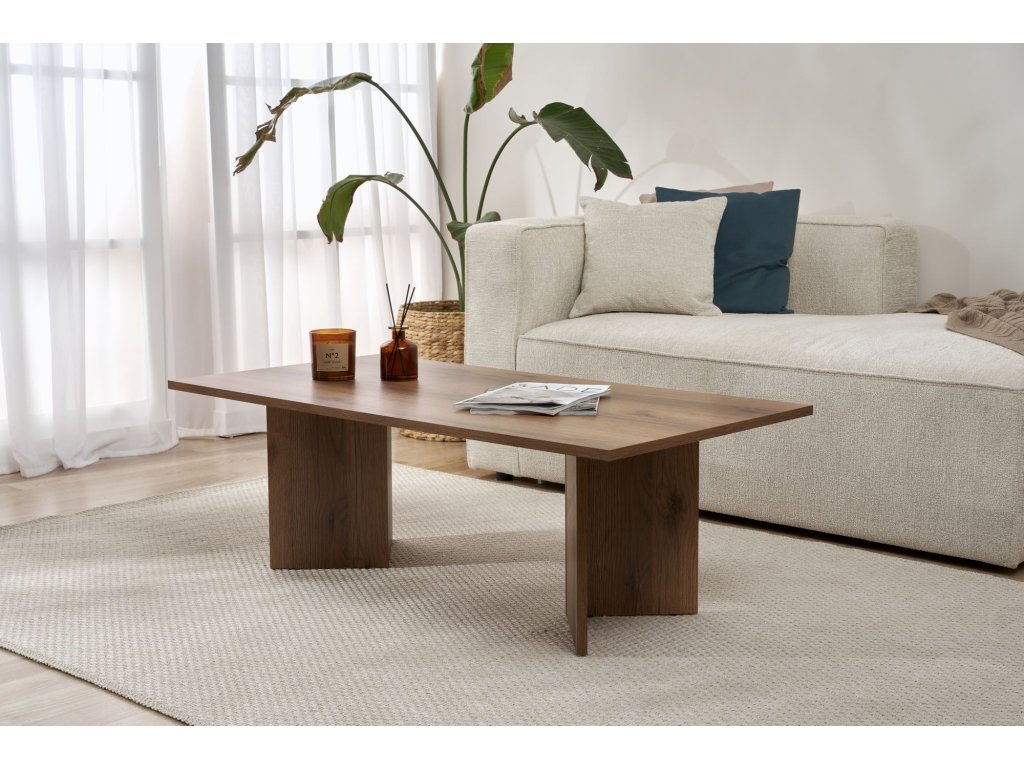 Proměňte svůj obývací pokoj v útulné a stylové útočiště s naším nádherným konferenčním stolkem z ořechového dřeva. Tento konferenční stolek je vyroben ze 100% dřevotřísky s melaminovým potahem a vyzařuje eleganci a sofistikovanost. Jeho elegantní design a teplá ořechová barva okamžitě pozvednou atmosféru vašeho prostoru a vytvoří příjemnou atmosféru pro vás i vaše hosty.