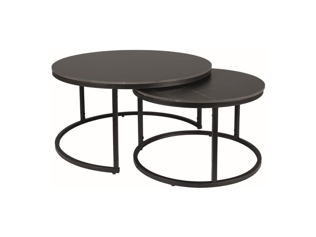 Sada konferenčních stolků 2 ks v moderním stylu. Konstrukce stolků je z kovu lakovaného černou barvou, vrchní deska je z keramiky v barvě černé s efektem mramoru. Tento stylový kousek v jednoduchém designu je vhodný nejen do obývacího pokoje, ale také do kanceláře, kavárny, baru, čekárny či recepce. Rozměry většího stolku jsou 80x80x42 cm, rozměry menšího 60x60x38 cm. Dodáváme v demontovaném stavu.Doplňkové parametry