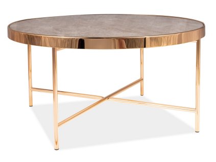 šířka: 43 cm | výška: 45 cm | hloubka: 43 cm Moderní kulatý konferenční stolek, menších rozměrů, konstrukce je kovová v měděné barvě, nohy stolku jsou zpevněny křížem z téhož...