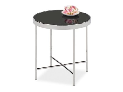 šířka: 43 cm | výška: 45 cm | hloubka: 43 cm Kulatý konferenční stolek v moderním stylu glamour. Konstrukce je z kovu - chróm, vrchní deska je z tvrzeného skla černé barvy....