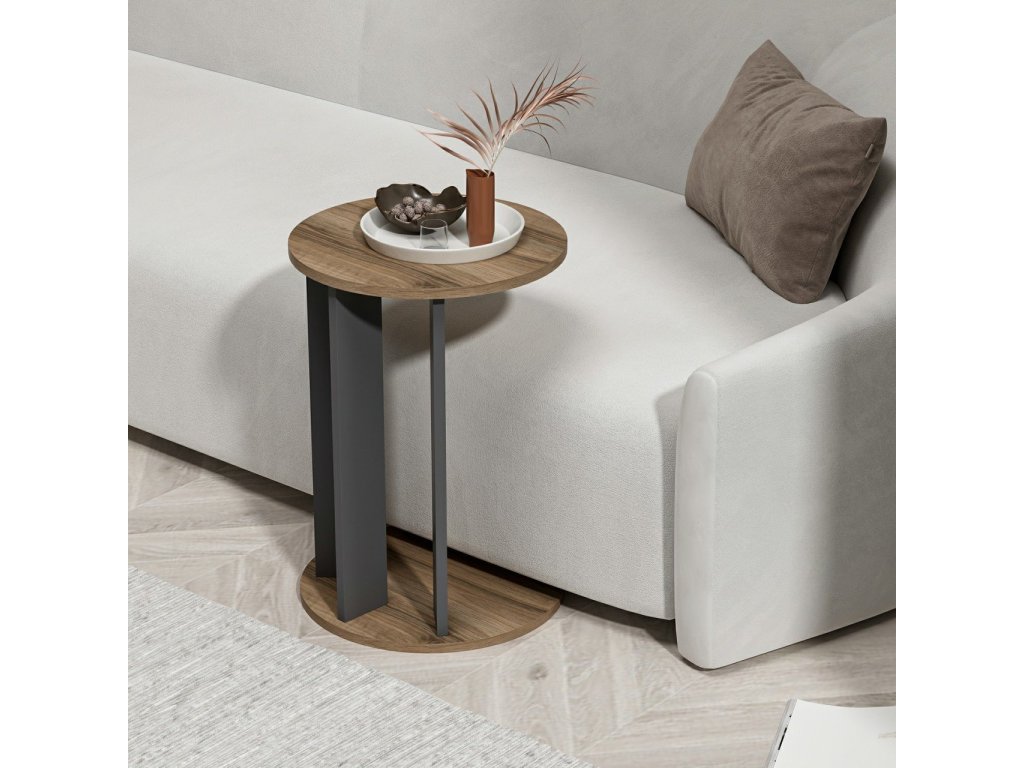Odkládací stolek je stylový a funkční kus nábytku, který přinese moderní vzhled a praktičnost do vašeho obývacího pokoje. Díky kombinaci dekoru dora a antracit, obdélníkovému tvaru a kovovým nohám se stane ideálním doplňkem do každého interiéru. Perfektní pro odkládání knih, časopisů nebo dekorací.