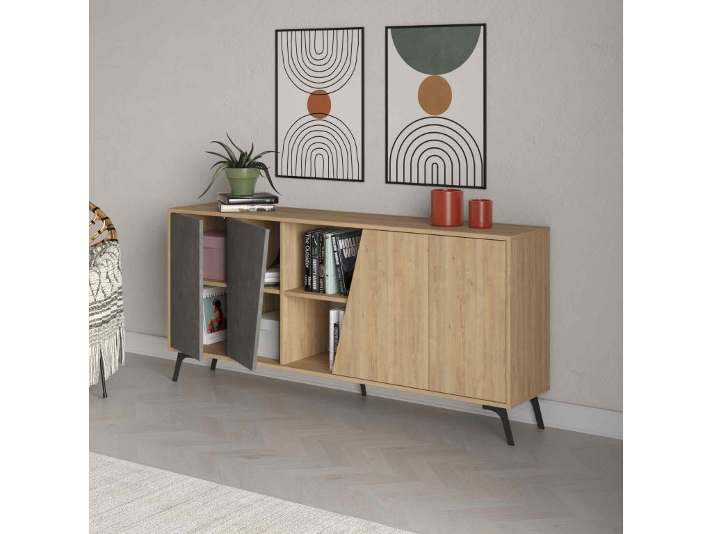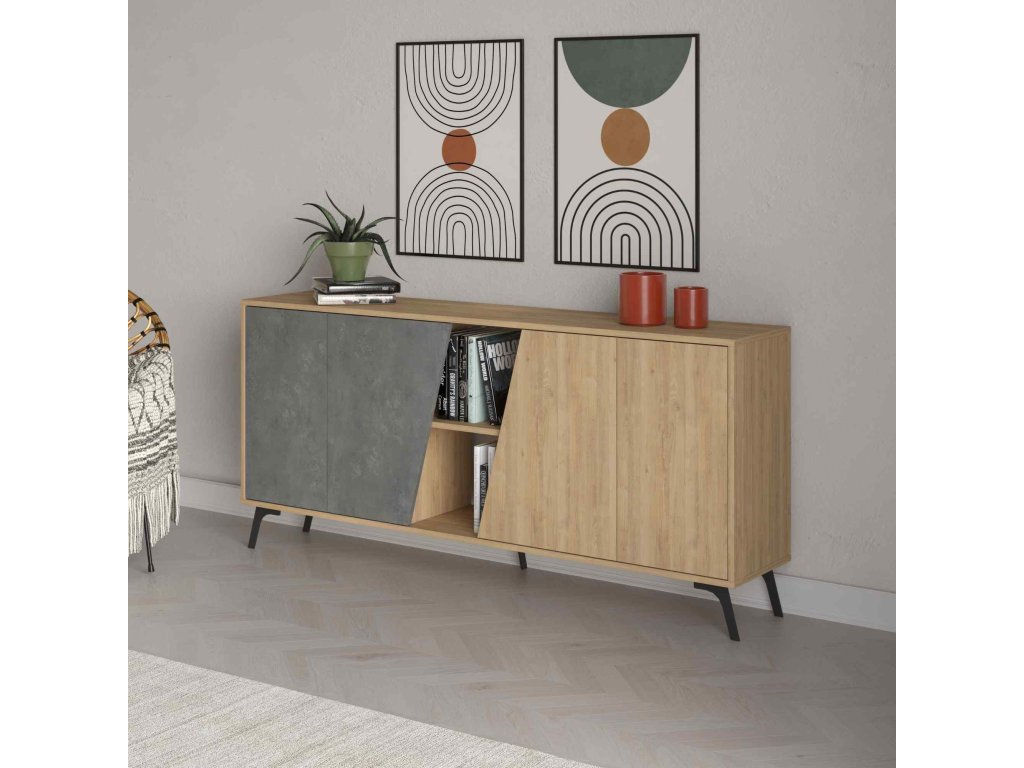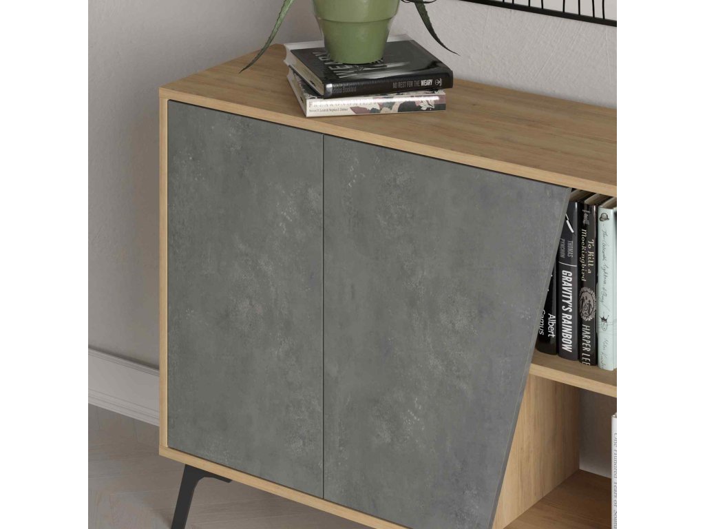 Seznamte se s - konzolovým stolkem, který přináší kombinaci tradičního dubu a moderní retro šedé. Ideální doplněk pro váš obývací pokoj či předsíň, kde vynikne jeho elegantní design.