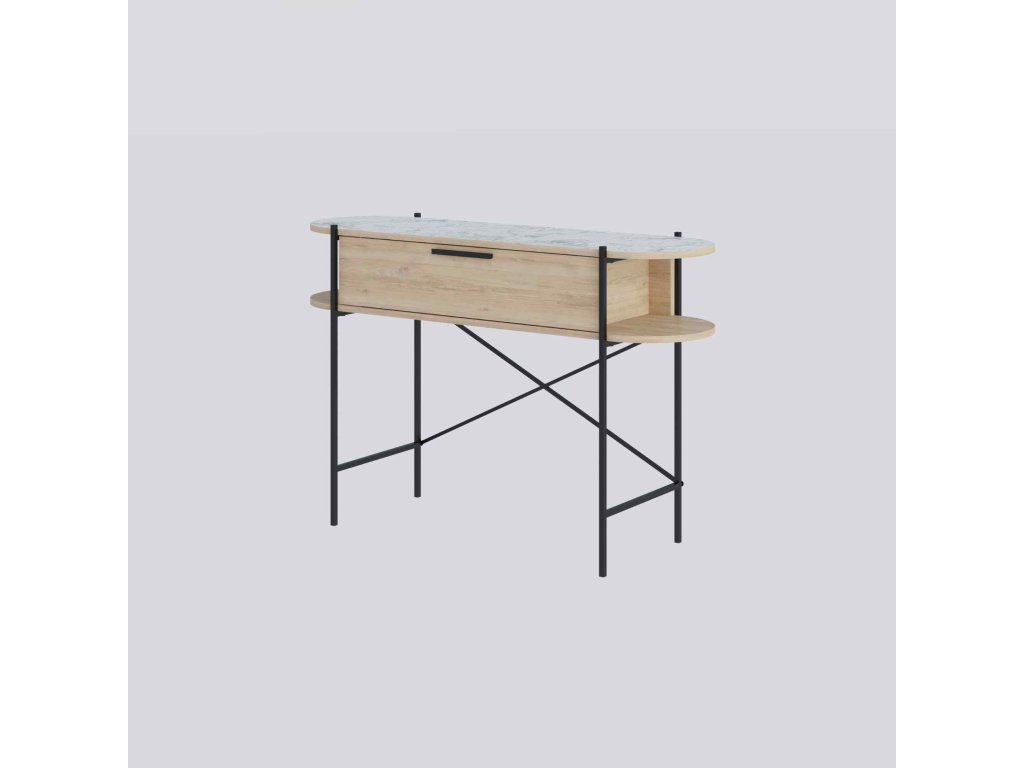 Industriální konzolový stolek LUNA, dub / bílá Carrara