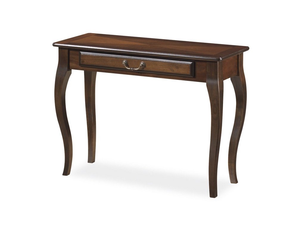 Elegantní konzolový stolek z kolekce PADOVA v rustikálním stylu. Zajímavý vzhled stolku vyzdvihují jemné tvary a ozdobný vzorek s dvojbarevným odstínem. Deska stolku je vyrobena z kvalitní MDF v kombinaci s přírodní dýhou, nohy stolku jsou ze dřeva. Stolek je v barvě tmavý ořech. Praktická zásuvka na drobnosti. Rozměry - 104 x 40 x 75 cm.Doplňkové parametry