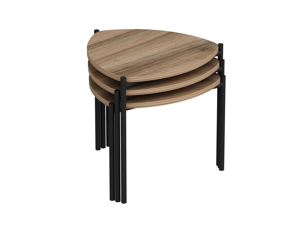 Sada obsahuje tři vkládací stolky různých velikostí, které vám umožní uspořádat je do různých konfigurací podle vašich potřeb. Když se nepoužívají, menší stolky se úhledně vejdou pod větší, čímž se ušetří cenný prostor na podlaze. Tento všestranný design je ideální pro malé byty nebo místnosti s omezeným prostorem.