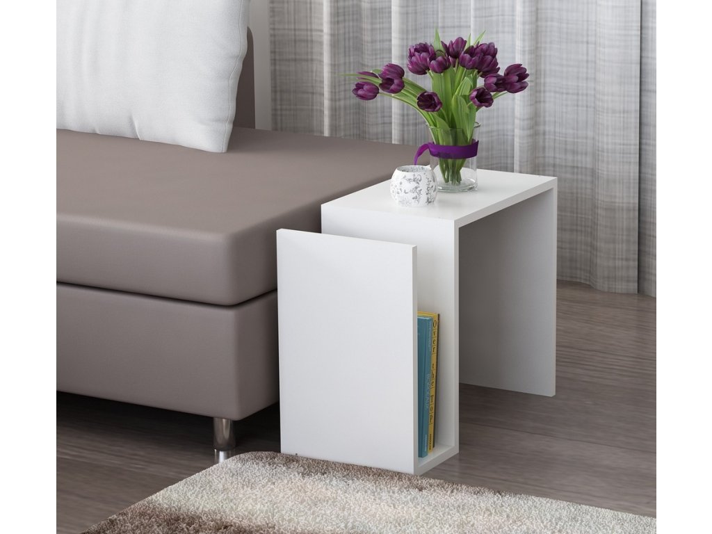 Odkládací příruční stolek je vyroben z kvalitního lamina o tl.18 mm hraněné PVC páskou, odolného proti poškrábání v barvě matná bílá. Dodáváme v demontovaném stavu.Doplňkové parametry