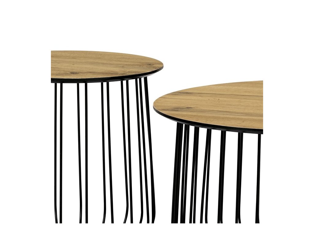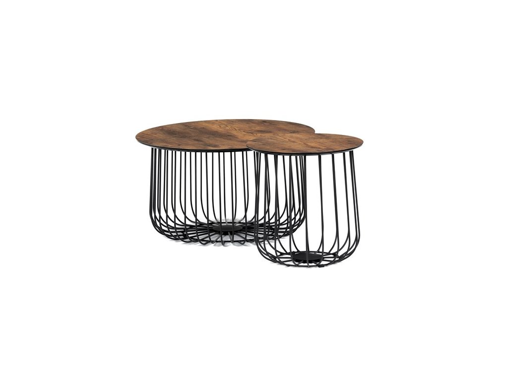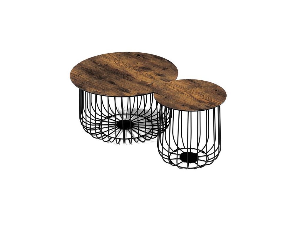 Set 2 ks variabilních a multifunkčních stolků, které můžete využít nejen jako konferenční set, ale skvěle poslouží i jednotlivě jako odkládací nebo přístavné. A to není vše. Po odklopení desky může stolek sloužit jako úložiště nebo odkladiště jistě potřebných věcí v domácnosti, které musíte mít stále při ruce anebo jen jako pokorný dekorativní prvek v interiéru, na který postavíte třeba jen květinu. Variabilita je opravdu neomezená a stačí zapojit fantazii. Co třeba dát dovnitř stolků vlastní květinové aranže či jinak vydekorovat anebo umístit příhodnou živou květinu. Pak už se stačí jen kochat vlastní tvorbou a se zalíbením sledovat závistivé pohledy návštěv. Stolky jsou v lehkém minimalistickém designu ve velmi oblíbeném industriálním stylu. Desky jsou z MDF tl. 18 mm, ze spodní části v černém matu se sraženou obvodovou hranou a v horní pohledové v 3D dekoru divoký dub. Drátěná kovová konstrukce ze subtilních kulatých profilů je v černém matu, povrchová úprava je kvalitním práškovým vypalovacím lakem. Ve spodní části jsou gumové patky, které zamezují poškození povrchu tvrdých podlah a zároveň zabraňují i nechtěnému posunu stolků. Větší stolek má průměr desky 60 cm a výšku 34 cm, vyšší má průměr 37 cm a výšku 39 cm. Nosnost stolků je do 30 kg každý. Stolky jsou velmi nenáročné na údržbu, stačí je otřít vlhkým hadříkem s vhodným čistícím prostředkem a už jen vysušit. Tento klad jistě ocení každý, a to nejen při úklidu. A dalším skvělé plus je, že zcela odpadá složitá montáž. Jen opatrně vybalíte, nasadíte desky a stolky jsou připraveny Vám sloužit dlouhá léta a vnést do Vašeho interiéru šarm industriálního stylu.